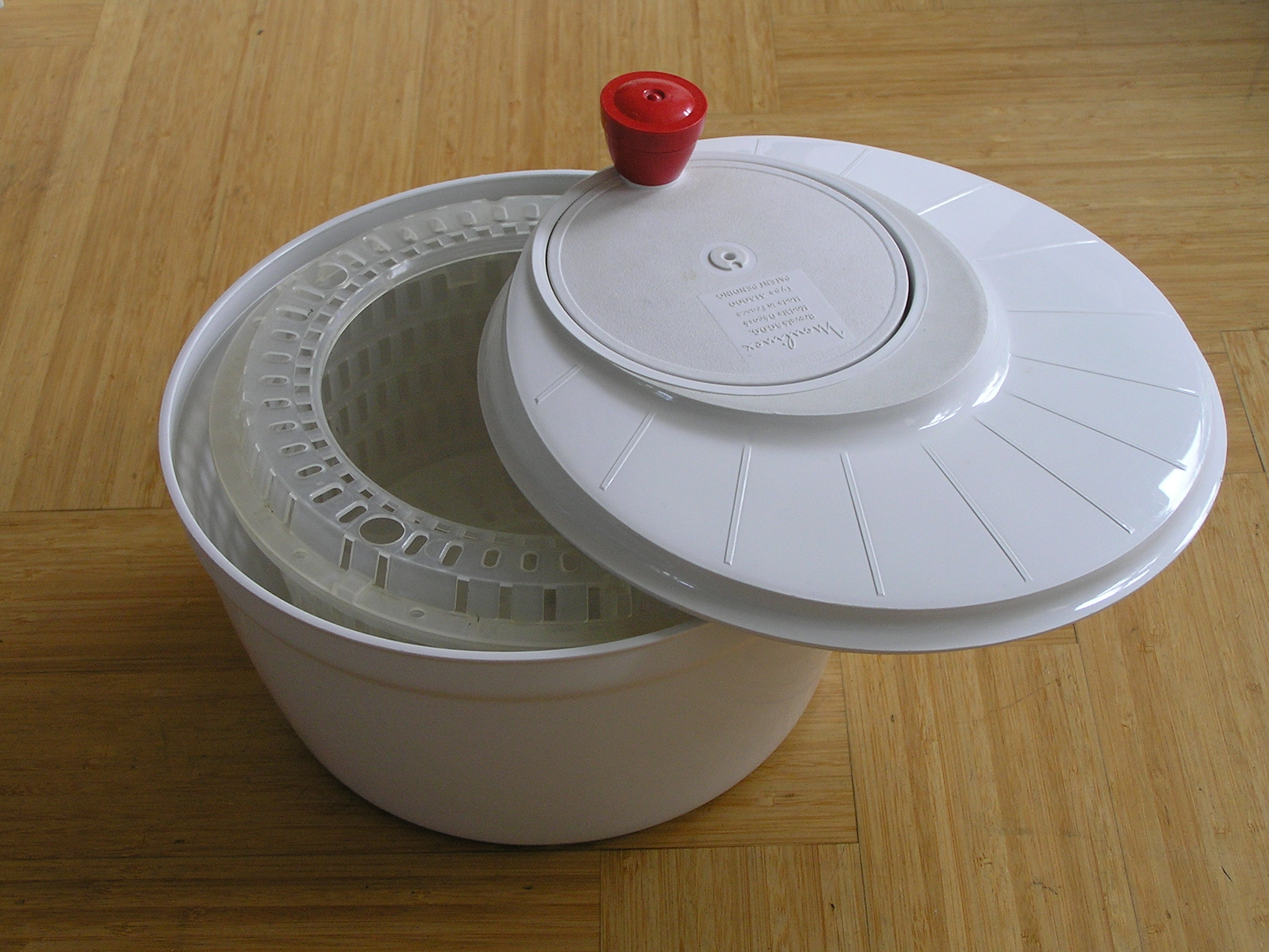 또한, 업무용 제품에도 원심력으로 채소 등의 물기를 제거하는 것이 있지만, 대용량이며 전용 탈수 봉투에 넣어 본체에 세팅하여 전동으로 고속 탈수할 수 있다 (채소 탈수기).