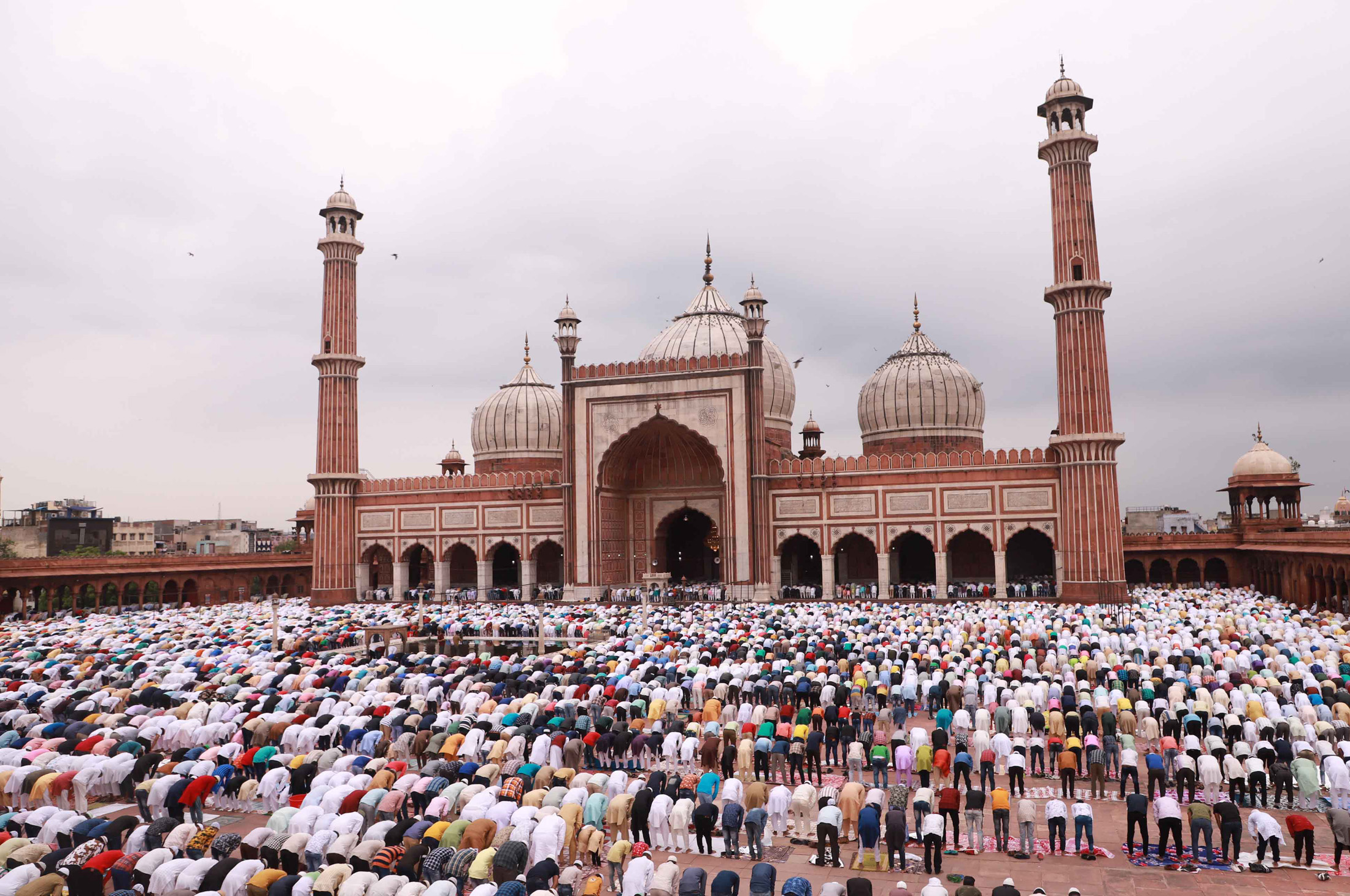 이드 알 아드하 자마 마스지드에서 이슬람 기도를 드리는 사람들