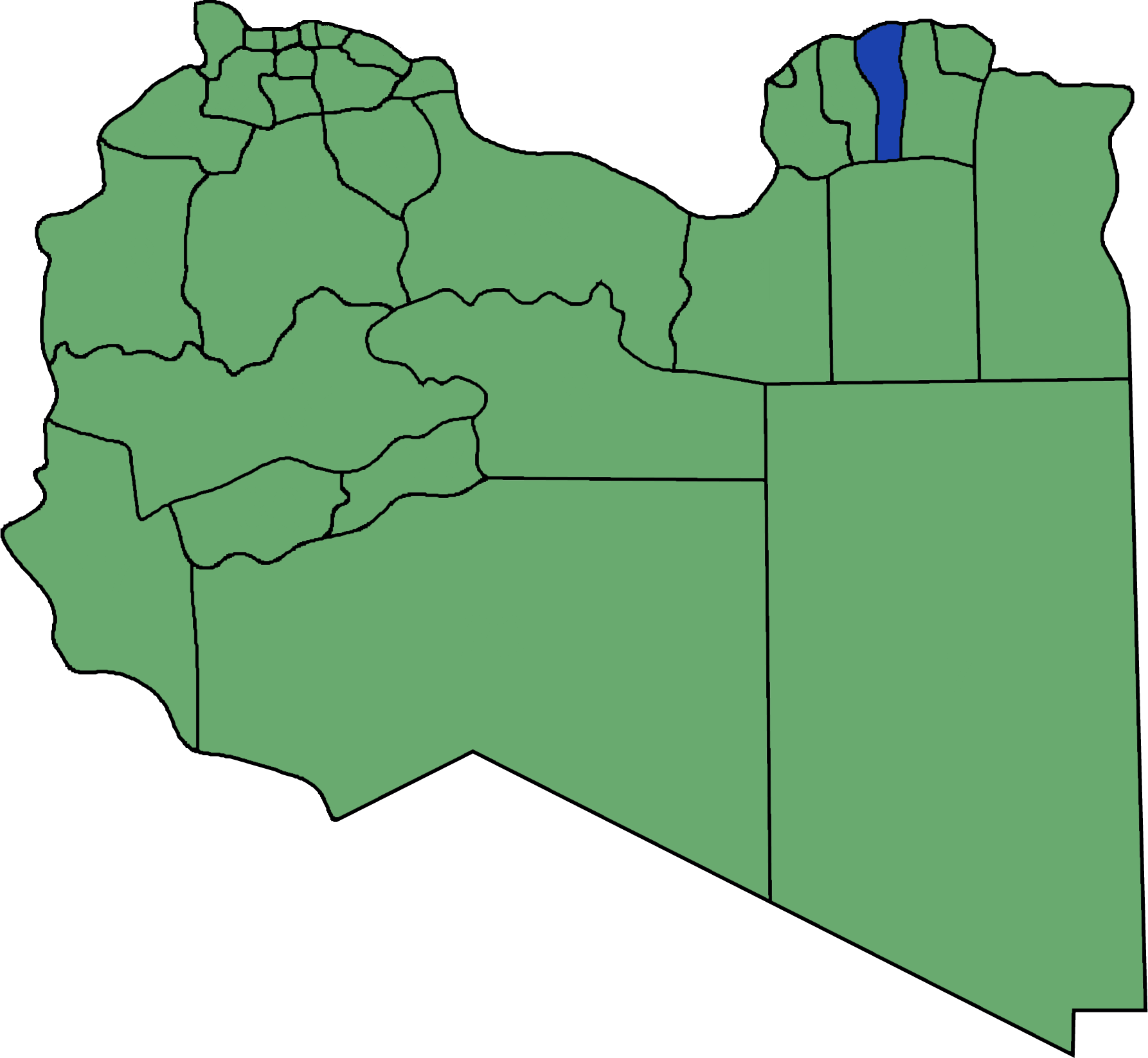 리비아는 1951년 식민 제국으로부터 독립했으며, 풍부한 석유 자원으로 잘 알려져 있다. 2011년 무장 반란으로 축출되기 전까지 42년 동안 모든 권력은 형제 지도자 무아마르 카다피에게 집중되어 있었다.[8] 헌법상 리비아는 가장 분권화된 아랍 국가로 규정되어 있지만, 실제로는 석유 수입 통제권을 가진 중앙 정부에 권력이 집중되어 있다. 지방 정부 기관은 교육, 산업 및 지역 사회 행정을 담당한다. 2012년에는 분권화 정책의 일환으로 기존 25개 지방 자치 단체를 13개 지역으로 개편했으며, 이 지역들은 다시 1,500개의 코뮌으로 세분화되었다.[9] 2015년부터 국가 원수는 대통령 위원회 의장이, 행정부 수반은 국무총리가 맡고 있다. 하원은 보통 선거와 대중 투표를 통해 선출되는 기관이다. 2016년 기준으로 리비아는 22개의 샤비야(지구)로 구성된 행정 구역 체계를 가지고 있었다.[10]