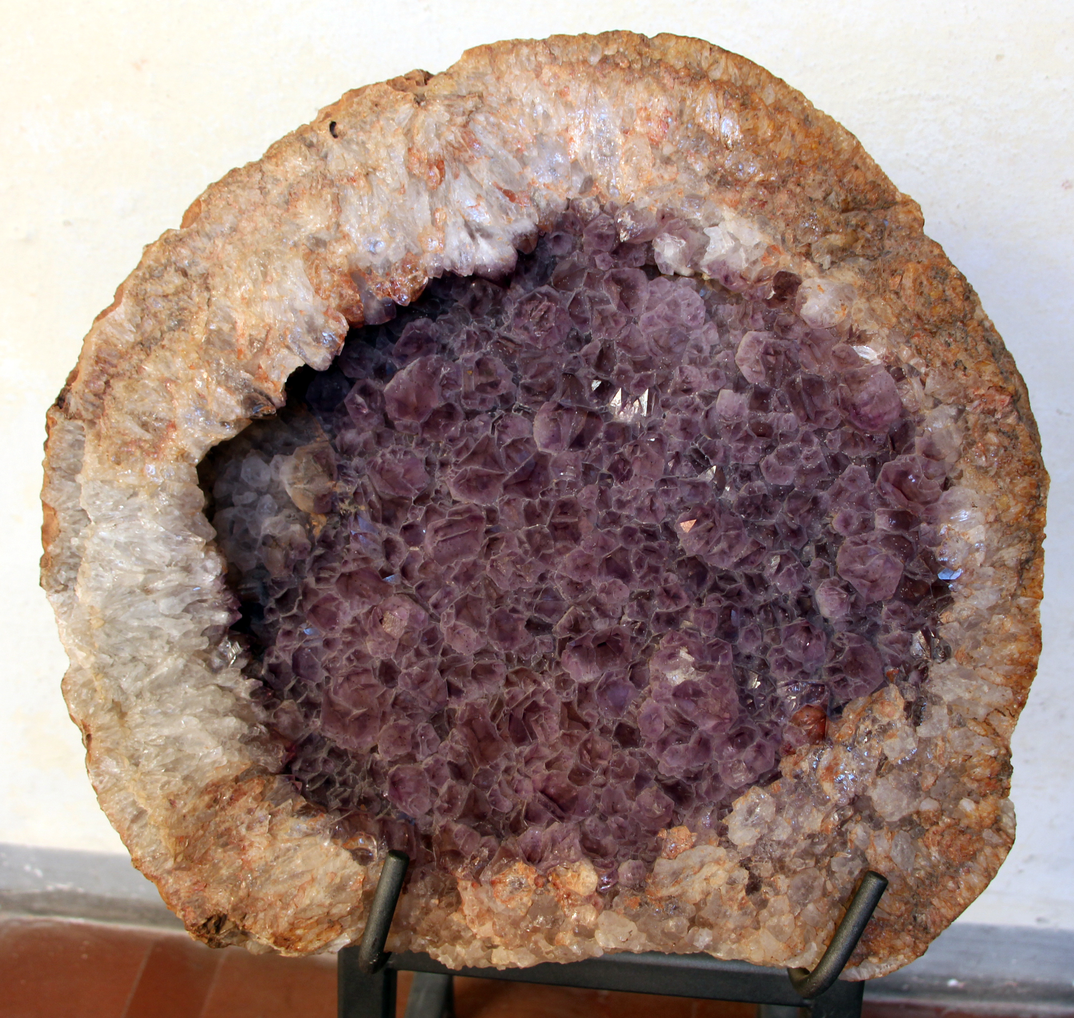 브라질 남부 산타크루스 근처에서 발견된 큰 온주공, 또는 "자수정 동굴"이 1902년 독일 뒤셀도르프 전시회에서 전시되었다.[1] 2월의 탄생석이다.