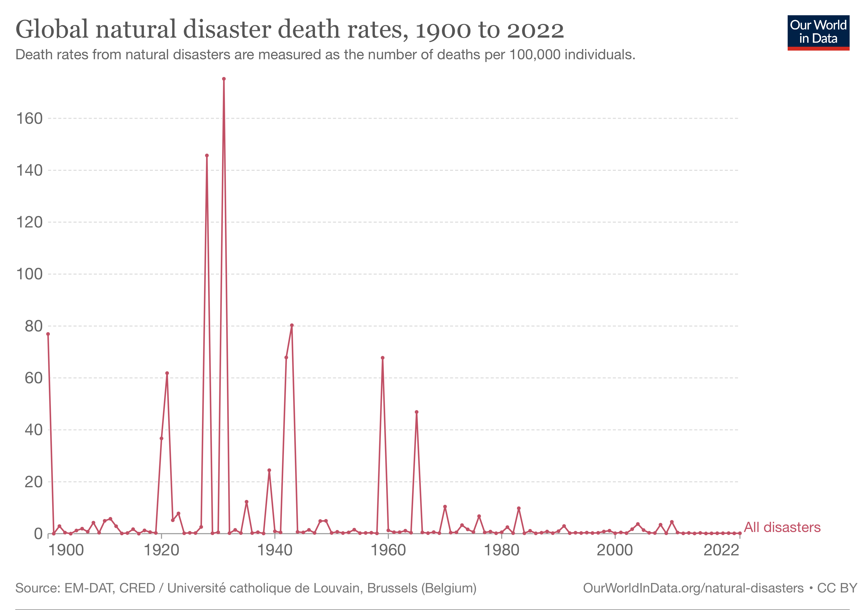 자연 현상이 발생해도 해당 지역에 취약성이 없다면, 즉 재해 대비가 완벽하거나 사람이 살지 않는다면 자연재해는 발생하지 않는다.[76]