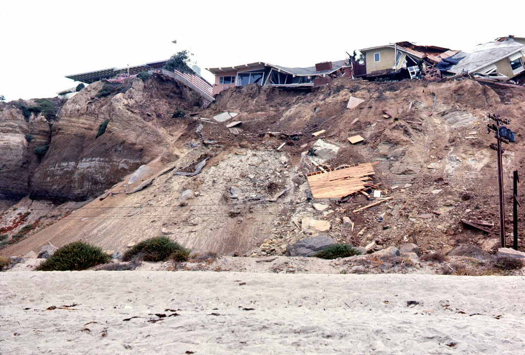 해안 침식은 전 세계 해안 지역의 해안선이 주로 조류와 폭풍 해일의 영향을 받는 파도와 해류에 반응하여 변화하는 물리적 과정이다.[47] 해안 침식은 장기적인 과정과 열대성 저기압이나 기타 심각한 폭풍과 같은 일시적인 사건으로 인해 발생할 수 있다.
