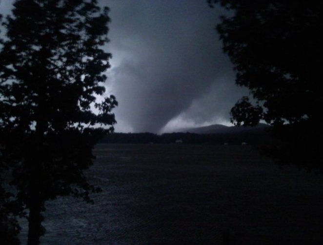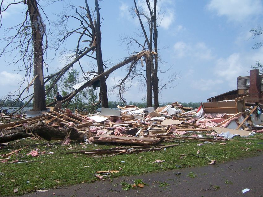 토네이도는 지표면과 적란운 또는 드물게 적운 기저부에 접촉하는 강력하고 위험한 회전하는 기둥 모양의 공기 덩어리이다. 대부분의 토네이도는 풍속이 110mph 미만이고, 지름이 약 약 76.20m이며, 소멸되기 전에 수 킬로미터 이동한다. 가장 극심한 토네이도는 풍속이 300mph을 초과하고, 너비가 약 3.22km를 넘고, 100km 이상 지상에 머무를 수 있다.[61][62][63]