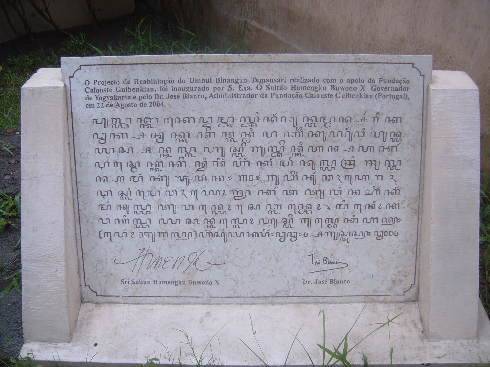 오늘날에는 로마자 사용이 일반적이며, 자와 문자는 장식용, 도로 표지판, 학술 용도 등에 국한되어 있다.[59] 자바 문자는 아부기다이며, 20개의 문자 각각은 자음(또는 "영 자음")과 고유 모음 'a'(/ɔ/로 발음됨)를 가진 음절을 나타낸다. 문자 주위에 배치된 다양한 구별 부호는 [ɔ]가 아닌 다른 모음, 종성 또는 외래어 발음을 나타낸다.