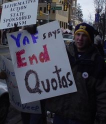 1963년 플로리다주 골트 호텔에서 열린 두 번째 YAF 전국 대회에서 호텔 측이 브루클린 출신의 흑인 대의원 돈 파커의 숙소를 거부하는 사건이 발생했다. 많은 대의원들이 호텔 로비에 모여 항의했고, 결국 호텔 측은 모든 흑인 YAF 회원들의 숙박을 허용하고 인종 차별 정책을 변경했다.[9] 그러나 흑인 회원은 YAF에서 항상 예외적이었으며, 스트롬 서먼드를 포함한 많은 단체 전국 이사들이 공개적으로 인종 차별주의자였다.[9] 1962년 YAF는 인종 차별주의자 사우스캐롤라이나주 상원의원 스트롬 서먼드에게 자유상을 수여하기도 했다.[15]