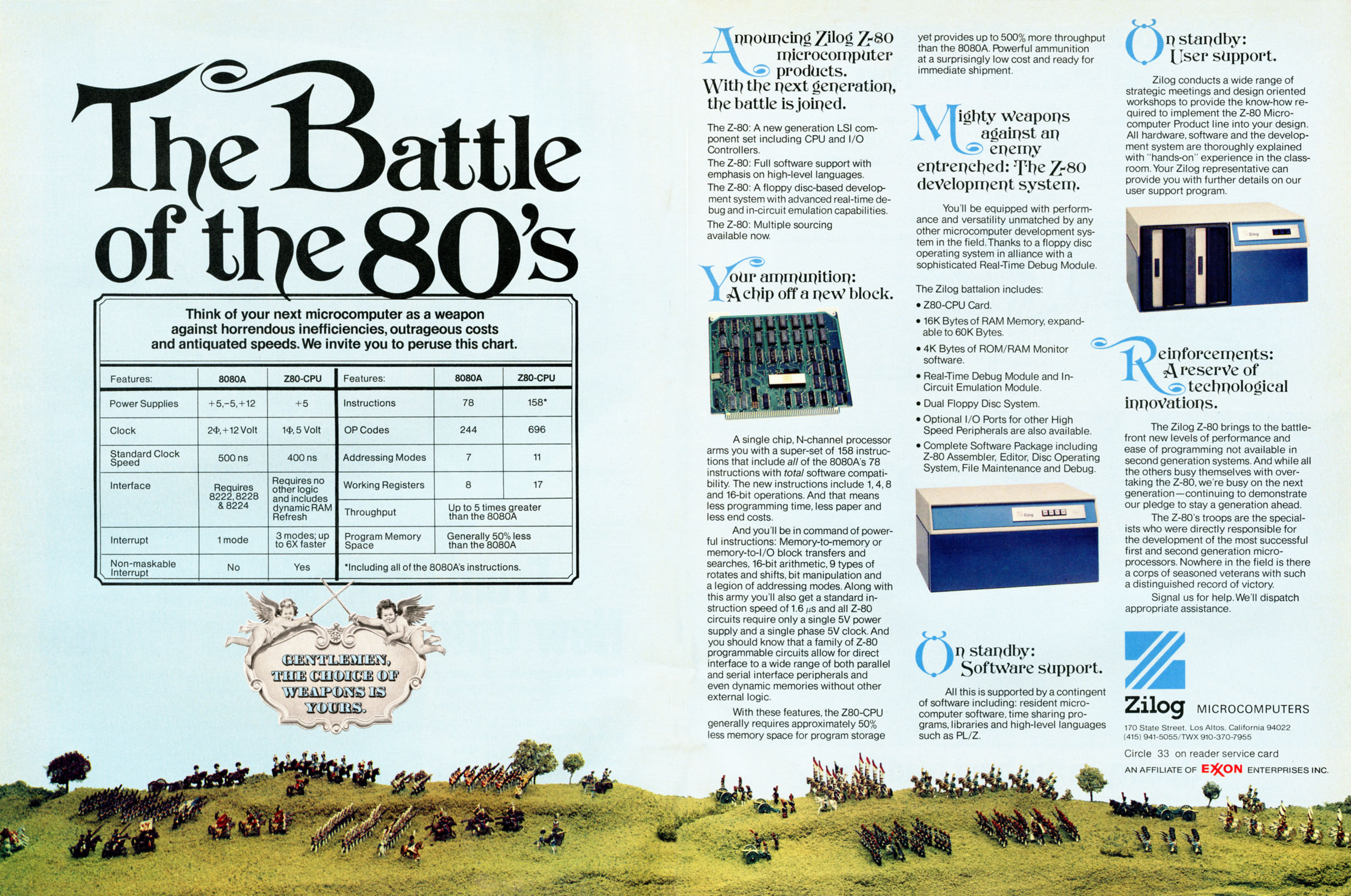 Z80은 인텔 8080 마이크로프로세서의 개량형으로, 자일로그에서 개발되었다. 8080 개발진들이 회사를 나와 자일로그를 설립하고 Z80을 설계했기 때문에, Z80은 8080과 소프트웨어 호환성을 가지도록 설계되었다.
