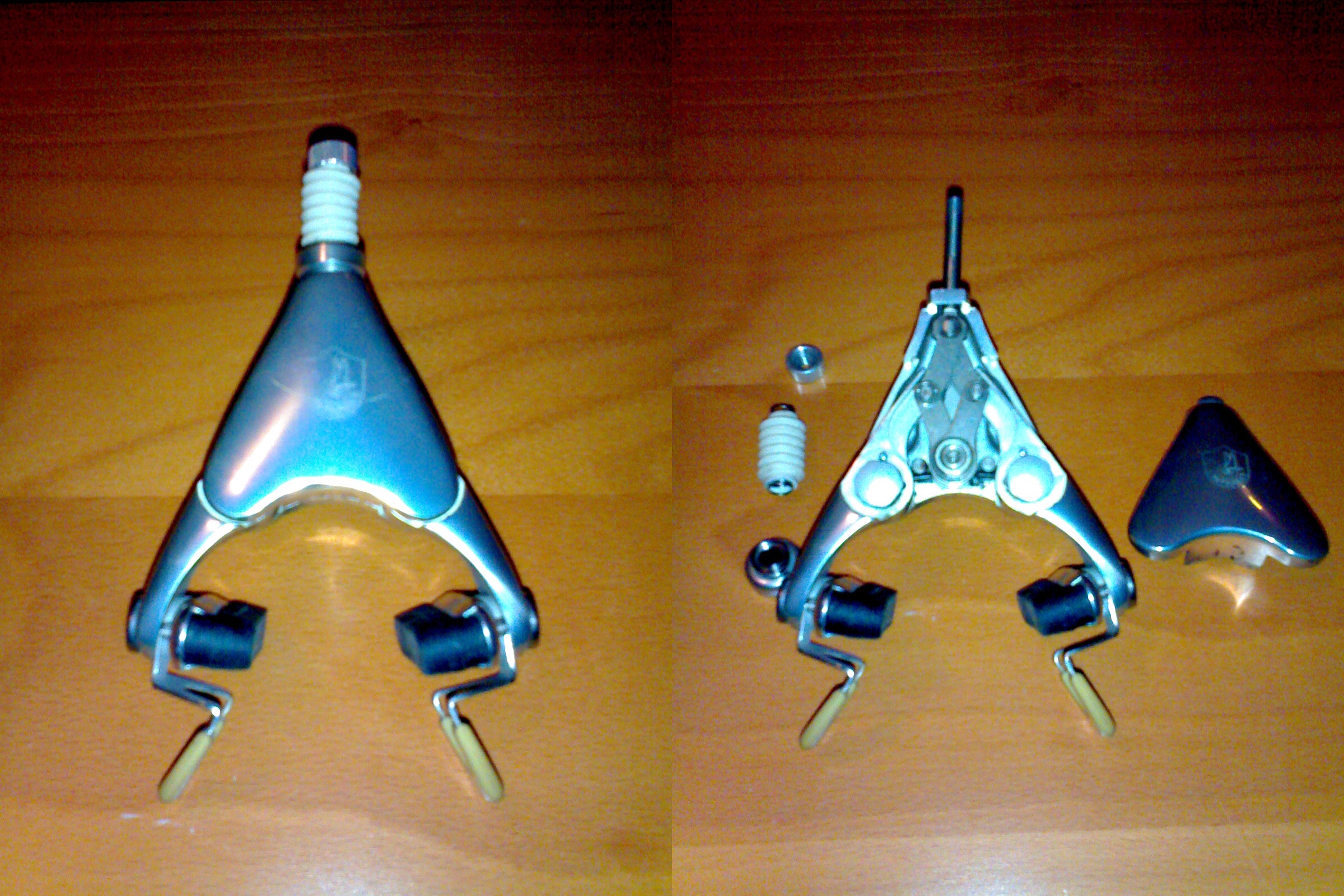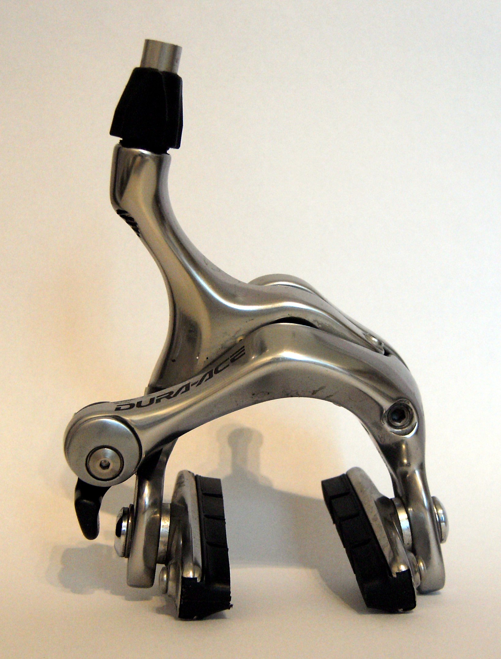 로드 브레이크를 대체하며 등장한 와이어식 림 브레이크의 초기 형태이다. 바퀴 위쪽에 고정된 캘리퍼 암이 케이블을 당기는 힘으로 움직여 림 양쪽을 패드로 누르는 방식이다. 주로 로드 자전거나 고정 기어 자전거에 많이 사용되며,[77] 고속 주행 시 속도 제어가 용이하다.[77] 구조에 따라 다음과 같이 나뉜다.