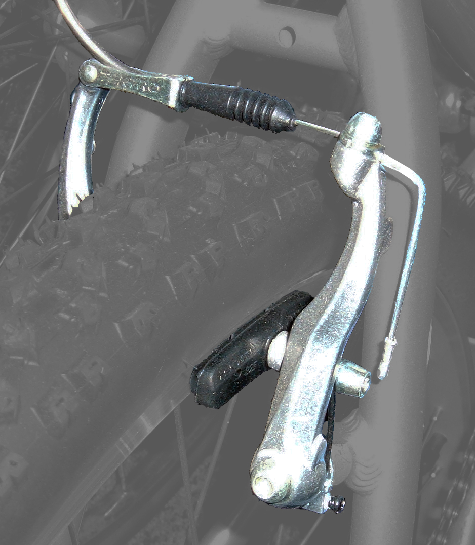 현대 자전거에서 가장 일반적인 기계식 작동 방식은 브레이크 레버와 보우덴 케이블을 연결하여 브레이크 암을 움직여 패드를 제동면에 밀착시키는 방식이다. 케이블 방식은 일반적으로 유압식보다 가격이 저렴하지만, 케이블이 외부에 노출되는 부분이 있어 오염이나 손상에 취약하며 주기적인 유지보수가 필요할 수 있다.[51]