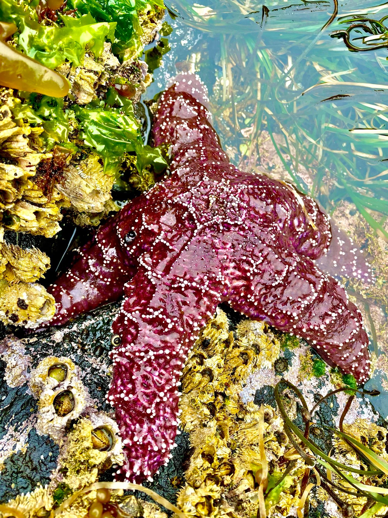 자주불가사리(Pisaster ochraceus)는 5개의 튼튼한 팔을 가진 불가사리 종으로, 주로 북아메리카 서해안의 조간대에서 발견된다. 보라색, 주황색, 노란색 등 다양한 색상을 띠며, 10~25cm 크기로 자란다. 이들은 홍합을 주로 먹고, 튜브 발을 사용하여 먹이를 섭취하며, 캘리포니아 홍합 개체수를 조절하는 핵심종으로 생태계에 중요한 역할을 한다. 자주불가사리는 이형생식을 하며, 최대 20년까지 살 수 있다. 해양 산성화에 비교적 강하며, 해달과 갈매기가 자연 포식자이다.