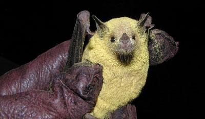 꽃가루로 덮인 작은긴코박쥐