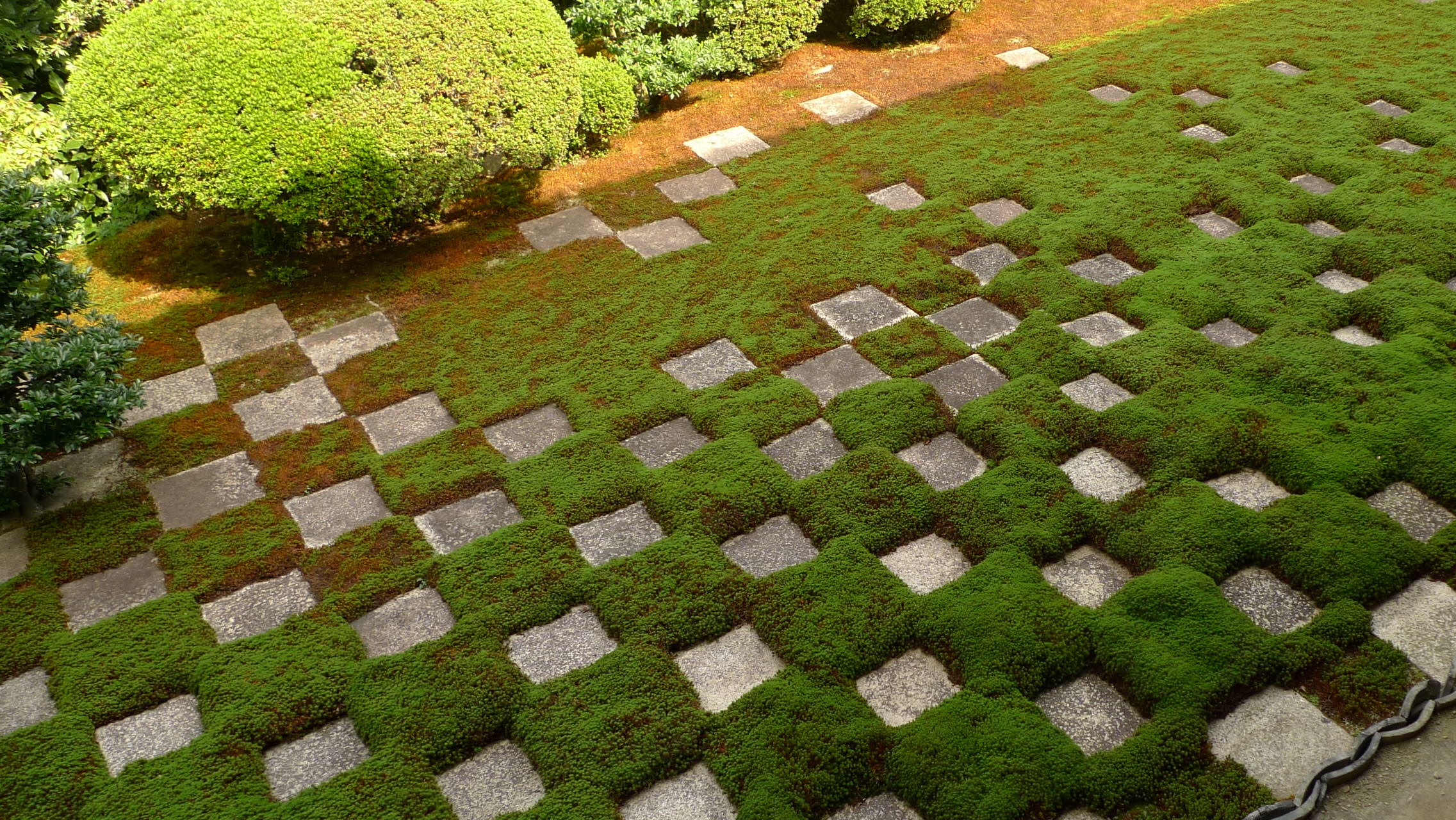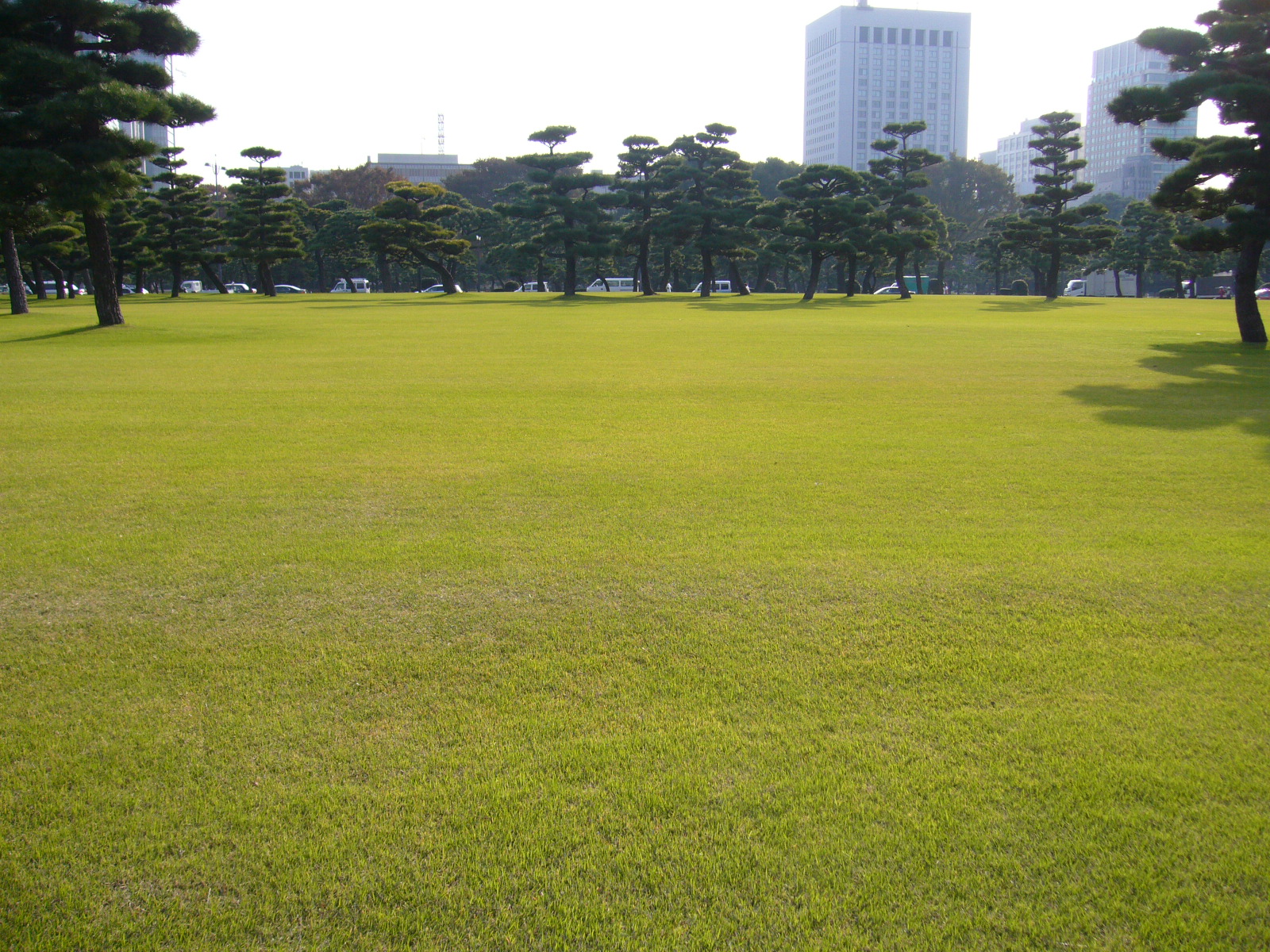 한국 잔디는 일본에 자생하는 식물로, 모두 시바속에 속하며 영어권에서는 일반적으로 조이시아(Zoysia)라고 불린다.한국 잔디는 여름형으로 고온기에 생육하지만, 겨울철에는 휴면하여 말라죽은 것처럼 보인다.[99] 생육 적온은 23°C~35°C로 높다. 따라서 통상적인 관리를 하고 있다면 일본의 여름에도 견딜 수 있다. 그러나 기온이 23°C 이하가 되는 11월부터 3월의 겨울철에는 생육이 정지하고 잎에 황변이 나타난다.