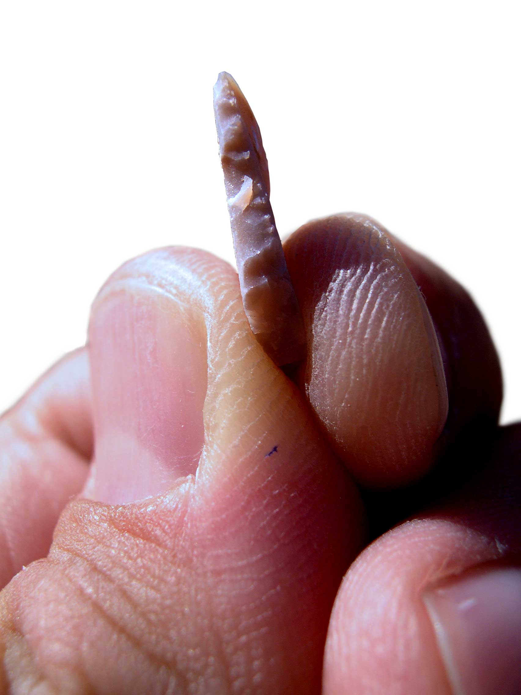 [15] 문서 M. Lenoir has found knapping similar to that used in chiseled bladelets from [[Gironde]], but considered this to be a coincidence and attributed the marks to the fact that the microliths were mounted on the tip of a projectile. A similar line of enquiry has also been followed by [[Lawrence H. Keeley]], who has studied a wide range of bladelets from the French site at Buisson Campin, in Verberie, [[Oise]].