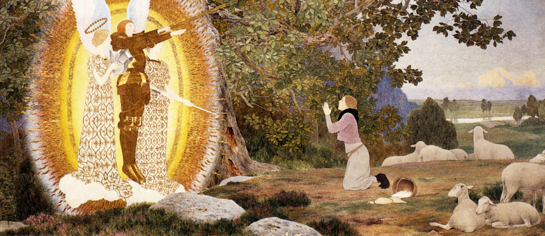 성 미카엘과 성녀 가타리나, 성녀 마르가리타로부터 하느님의 계시를 받는 잔 다르크. 1911년 그림.