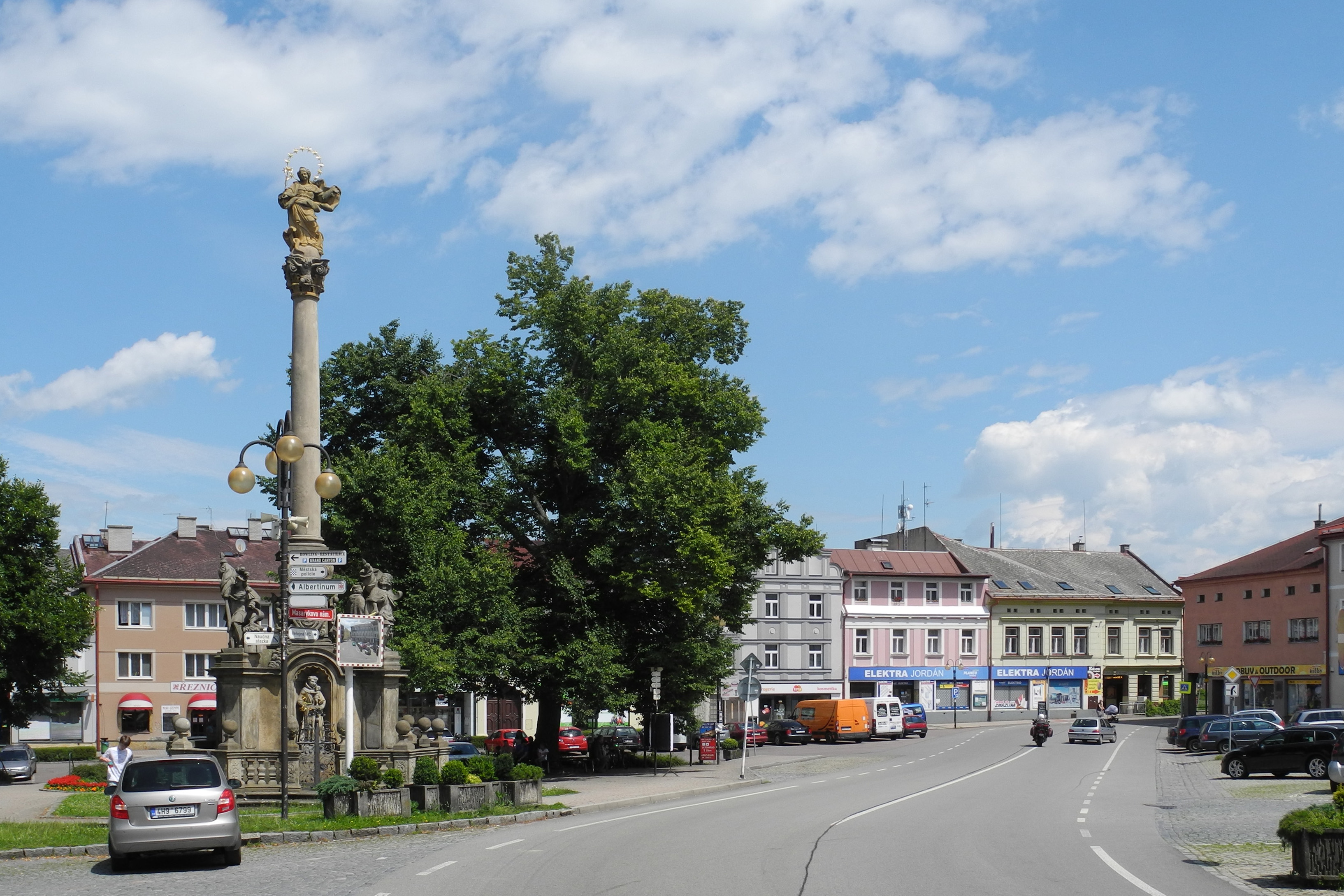 역사적인 중심지는 마사리코보 광장과 인접한 거리로 형성되어 있다. 광장의 주요 랜드마크는 1810년에 지어진 신고전주의 건물인 시청이다. 광장 중앙에는 17세기 후반의 마리아 기둥과 님프와 켄타우로스 조각상이 있는 분수가 있다.[7]