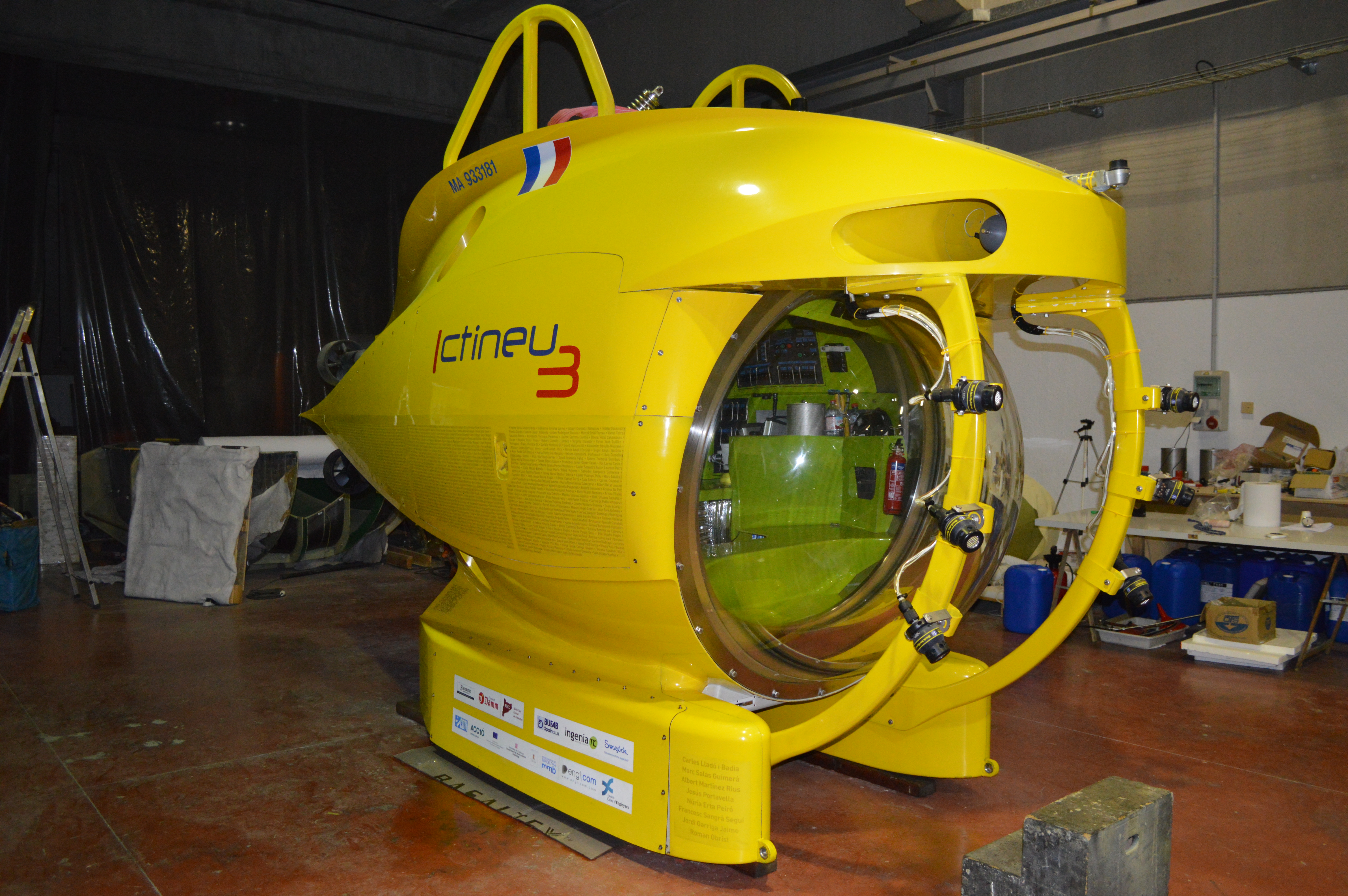 이크티네우 3(Ictineu 3)는 대형 반구형 아크릴 유리 관측창을 갖춘 유인 잠수정으로, 최대 수심 까지 도달할 수 있다.