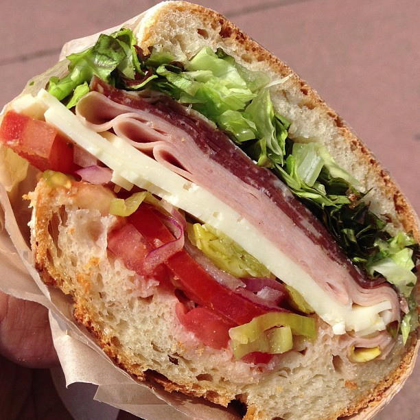 전통적인 메인 이탈리안 샌드위치는 길고 부드러운 빵이나 롤빵에 햄, 아메리칸 치즈, 토마토, 양파, 피망, 그리스 올리브, 피클, 올리브 오일 또는 샐러드 오일, 소금, 흑후추를 사용하여 준비한다.[26][27][28] 페퍼로니, 바나나 페퍼 또는 상추와 같은 추가 재료를 샌드위치에 넣을 수 있다. 샌드위치는 종종 반으로 잘라 취급하기 쉽게 만든다.[26][29][30]