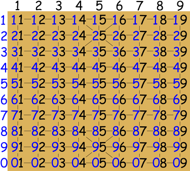 대한장기협회에서 3차 개정하여 사용하고 있는 장기판의 좌표 표기법은 모두 숫자로 표기한다. 가로선은 위에서 아래로 1부터 0까지, 세로줄은 왼쪽에서 오른쪽으로 1부터 9까지 표기한다. 가로선과 세로줄이 만나는 교차점을 읽을 때, 가로선을 먼저 읽은 후 세로줄을 나중에 읽는다. 예를 들어, 초와 한의 궁이 처음 놓이는 좌표 위치는 각각 95와 25이다.