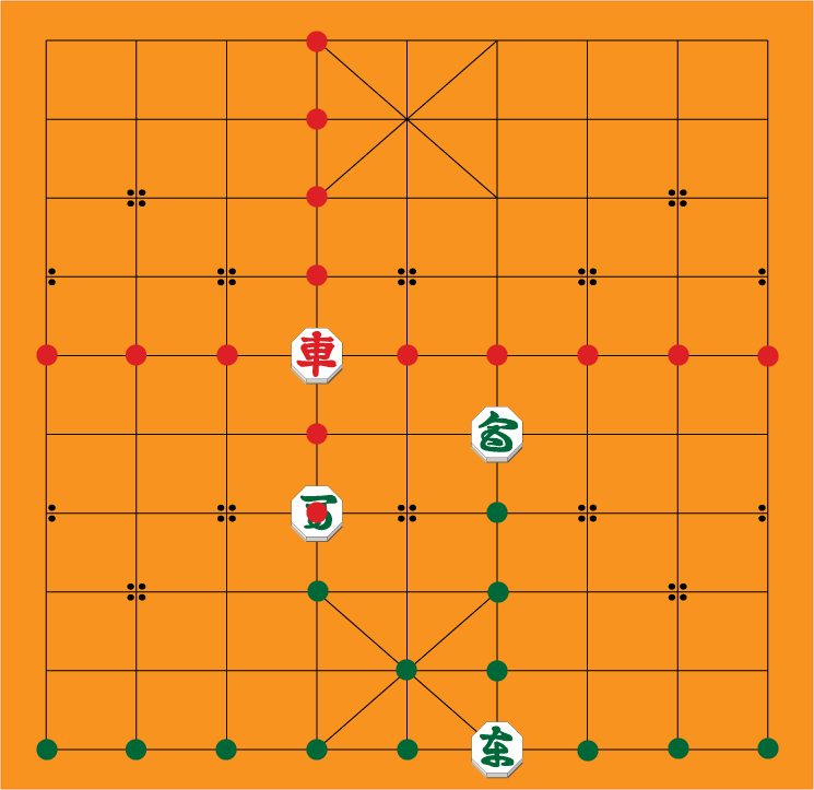 포 | 包/包 | 각 2개 | 다른 기물을 하나 넘어서 가로, 세로로 이동. 궁성 안에서는 대각선으로도 이동 가능 (단, 넘을 기물이 있어야 함). 포끼리는 넘거나 잡을 수 없다. |