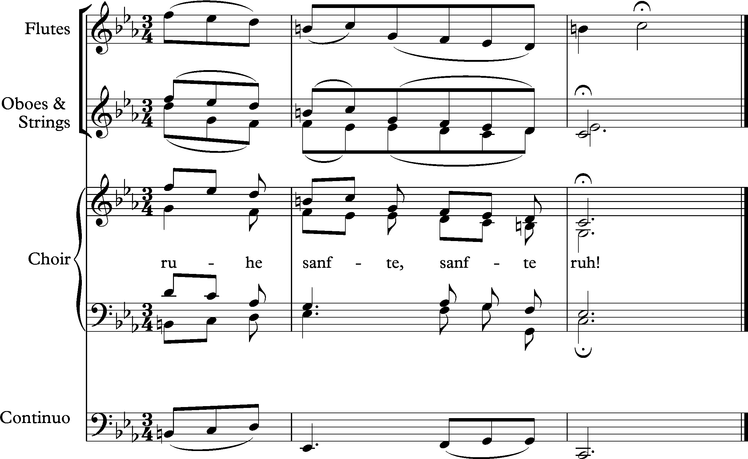 요한 제바스티안 바흐의 《마태 수난곡》 마지막 마디에서 단조 장7화음이 사용된 예시를 찾아볼 수 있다.[1] 존 엘리엇 가디너는 이 화음을 "예상치 못한 거의 고통스러운 불협화음... 멜로디 악기는 결국 C 단조 종지로 녹아들기 전에 B 내추럴(충돌하는 이끔음)을 고집한다"는 맥락으로 설명한다.[1]