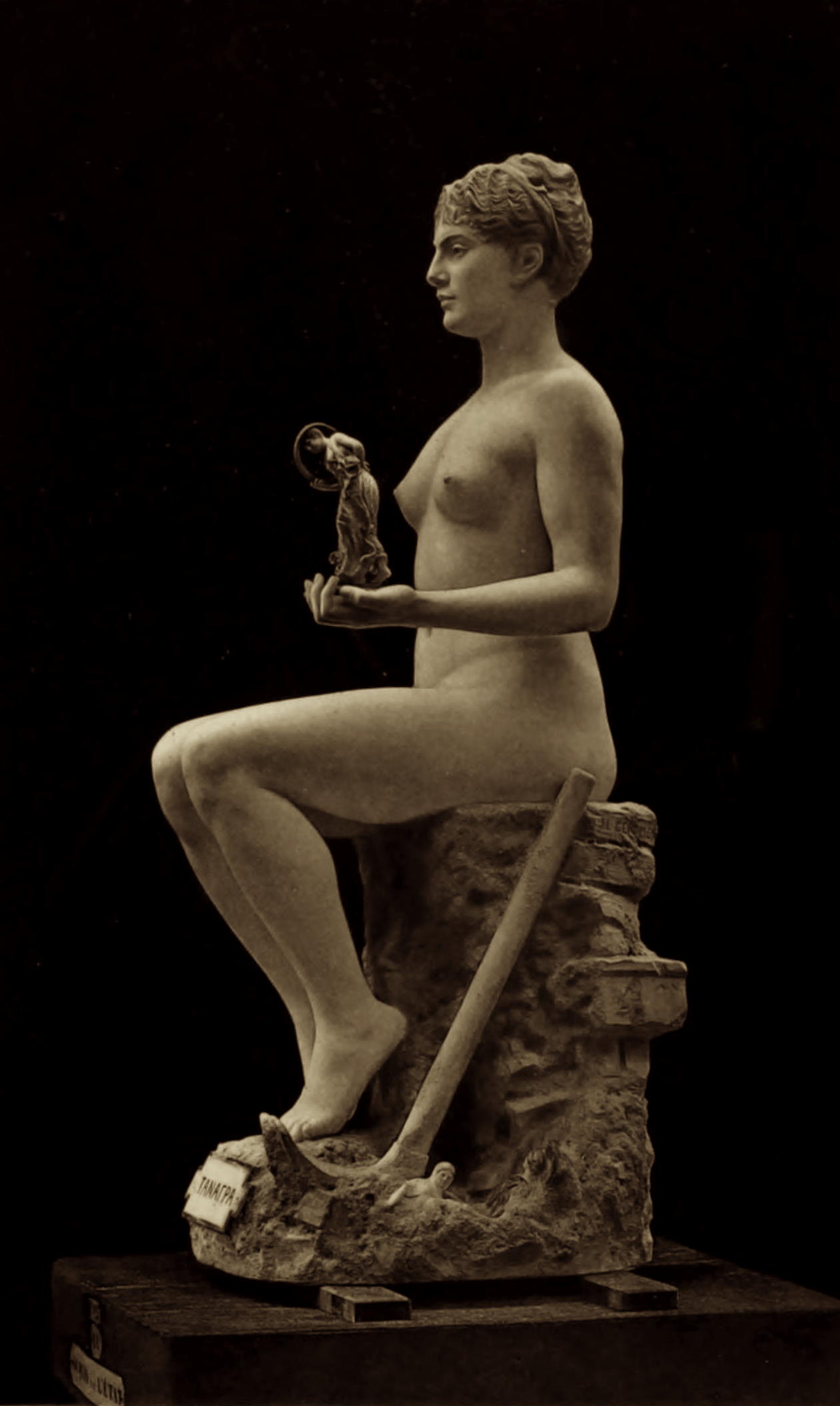 같은 해, 제롬은 5피트 높이의 착색 대리석 ''타나그라''를 조각했다. 이 조각상은 고대 도시의 수호신인 티케를 의인화한 여성 누드상이다. 그녀는 들어 올린 손바닥에 여자 후프 댄서의 작은 조각상을 들고 있다. 제롬은 ''타나그라''의 피부, 머리카락, 입술, 젖꼭지를 섬세하게 착색하여 1890년 살롱에서 센세이션을 일으켰다.[25]
