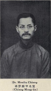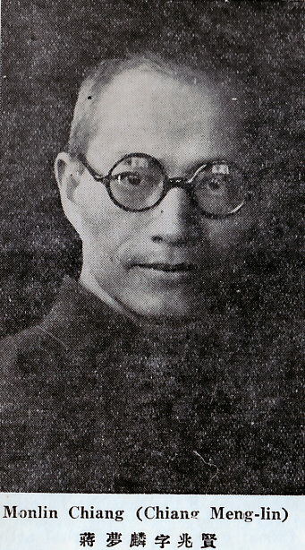 장멍린은 1886년 중국 저장성 닝보에서 태어나 교육자, 정치가로 활동했다. 미국 유학 후 귀국하여 교육계에 헌신했으며, 베이징 대학 총장, 중화민국 교육부 부장, 행정원 비서장 등을 역임했다. 1949년에는 장제스를 따라 대만으로 건너가 농촌 부흥 사업에 기여했으며, 1964년 사망했다. 저서로는 『중국 교육 원리 연구』, 『과도 시대의 사상과 교육』 등이 있다.
