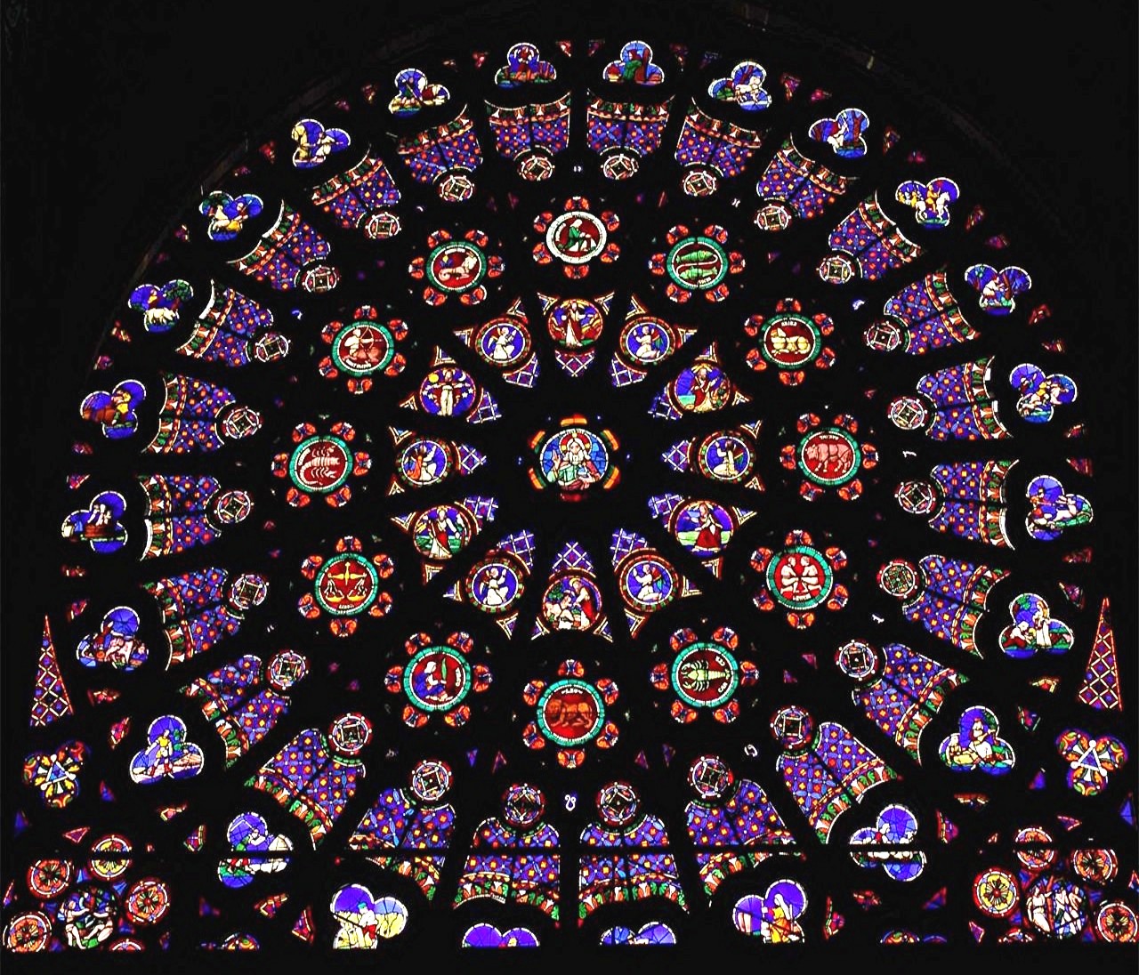 The early 13th-century stained glass in the western rose of Chartres Cathedral