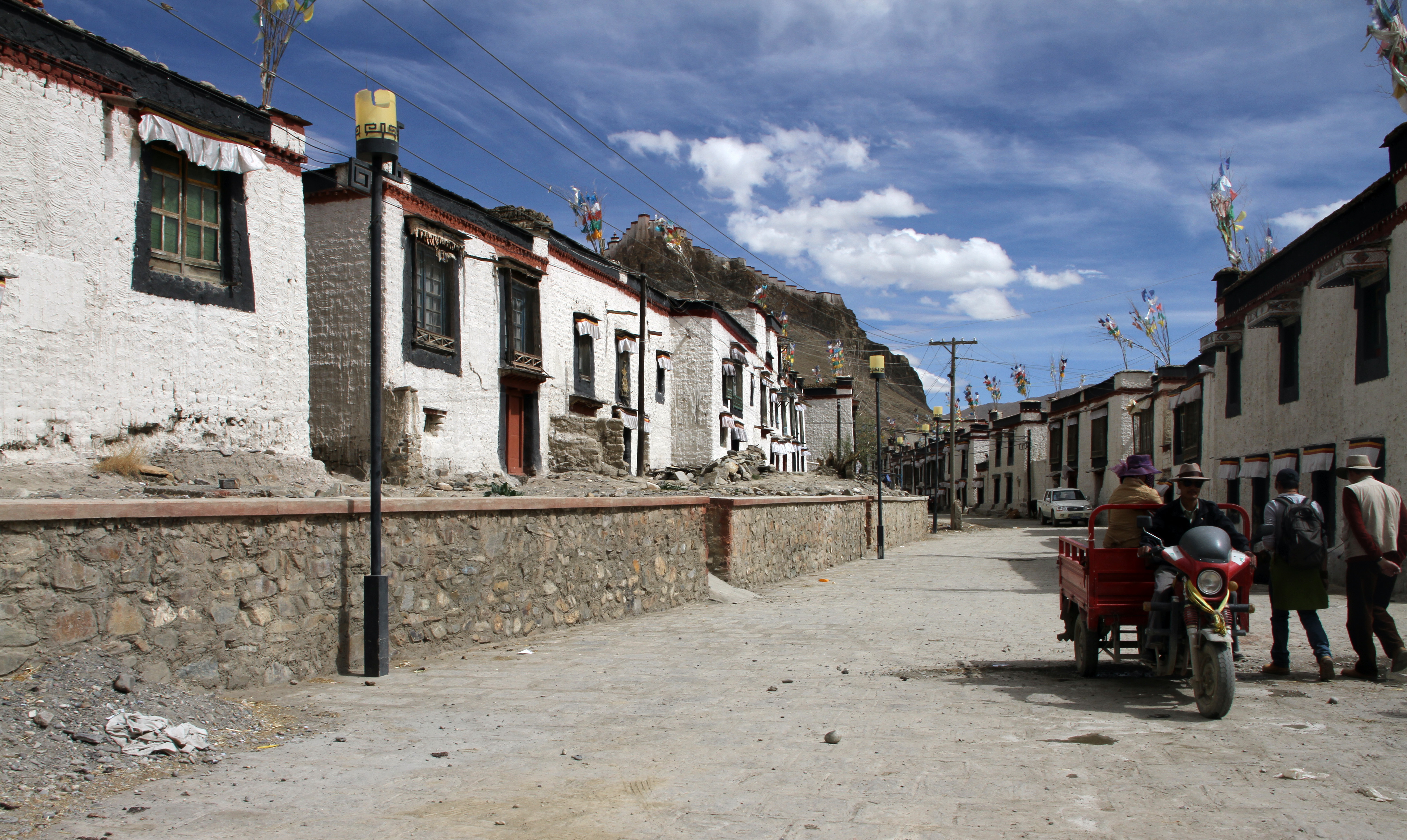농업이 주요 산업이며, 보리, 완두, 밀, 유채 등을 주로 생산한다. 티베트의 주요 곡창 지대 중 하나로 "후장(뒷장)의 곡창"이라는 별칭을 가지고 있다. 1,200년 역사의 융단(카펫) 생산으로 유명하다.[1]