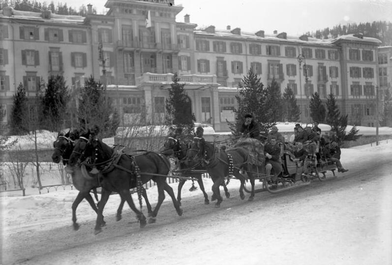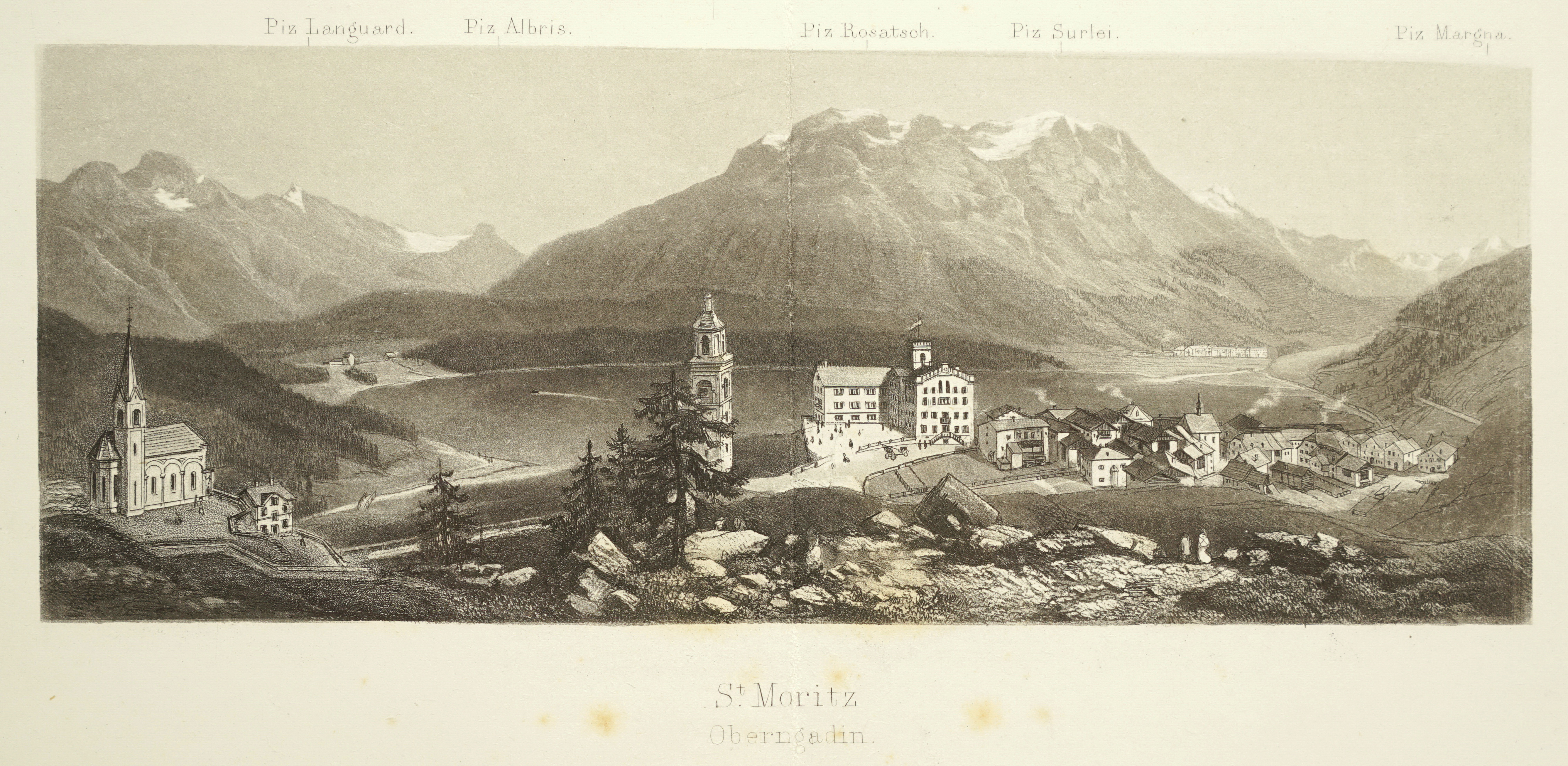 1864년 9월, 장크트모리츠 호텔의 선구자 카스파 바드루트는 영국인 여름 손님 4명과 흥미로운 내기를 했다. 여름에만 장크트모리츠를 방문했던 손님들에게 겨울에도 마을을 방문해보고, 마음에 들지 않으면 여행 경비를 돌려주겠다는 제안이었다. 만약 그들이 겨울의 장크트모리츠를 매력적으로 느낀다면, 원하는 만큼 오랫동안 그의 손님으로 머물 수 있도록 초대하겠다고 약속했다.[1] 이 내기는 장크트모리츠뿐만 아니라 알프스 전체 겨울 관광의 시작을 알리는 계기가 되었다.같은 해, 스위스 최초의 관광 안내소가 장크트모리츠에 설립되었다. 이후 장크트모리츠는 19세기 후반에 걸쳐 빠르게 발전했다. 1878년 쿨름 호텔에 스위스 최초의 전등이 설치되었고, 1880년에는 유럽 대륙 최초의 컬링 대회가 열렸다.[1] 1882년에는 제1회 유럽 아이스 스케이팅 선수권 대회가 장크트모리츠에서 개최되었으며, 1889년에는 알프스 최초의 골프 대회가 열렸다. 1890년에는 최초의 봅런 및 봅슬레이 경기가 열렸고, 1896년에는 알프스 최초로 전기 트램이 설치되었으며, 팰리스 호텔이 개장했다.[1] 1906년에는 눈 위에서, 이듬해에는 얼어붙은 호수에서 경마가 열렸다. 1929년에는 스위스 최초의 스키 학교가 장크트모리츠에 설립되었다.[1]