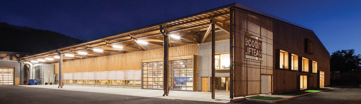 장 뤽 산도스는 대규모 목재 패널 작업과 고경간 구조물 작업을 포함하여 모든 유형의 건축에 목재를 사용한다.[14] 그의 엔지니어링 사무실의 계산과 혁신에 대한 탐색은 그가 범위와 높이뿐만 아니라 단열 및 방음 특성 측면에서도 새로운 기록을 세우는 데 도움이 되었다.[17][18][19][20][21][22][23][24][25]