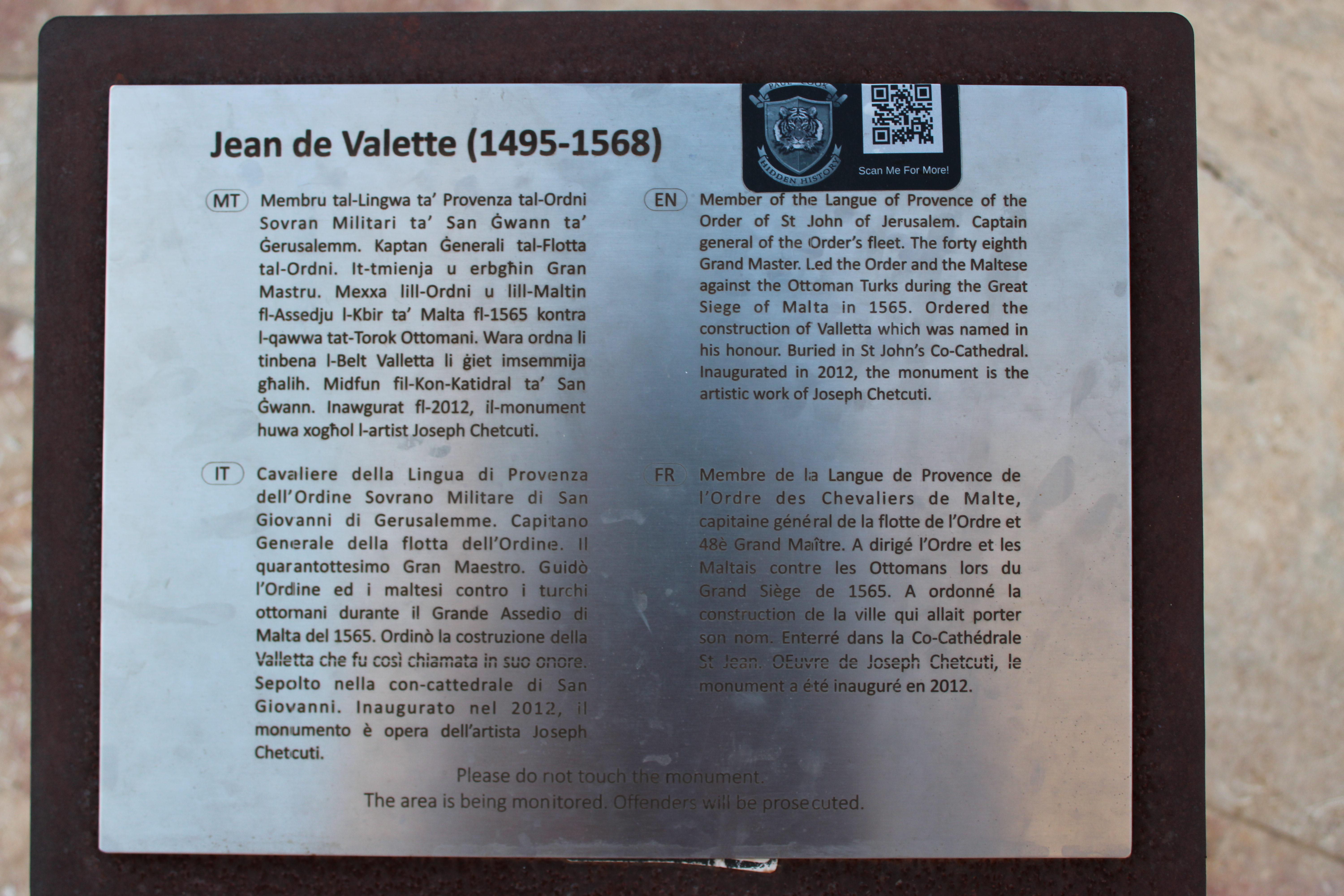 It is Grand Master Jean De la Valette
