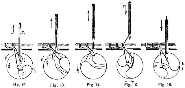 재봉틀은 윗실과 밑실, 두 가닥의 실을 사용하여 겹쳐진 천을 꿰매는 기계이다. 윗실은 바늘에 꿰어져 천 밑으로 내려갔다가 밑실을 공급하는 보빈을 가진 북의 둘레를 한 바퀴 돌아 밑실과 얽혀 천 위로 올라온다. 이와 동시에 천은 옮기는 장치에 의해 한 바늘분 전진하며, 바늘이 다음 자리에 실을 꿰고 밑실과 얽어 올라오는 과정을 반복한다.[52]
