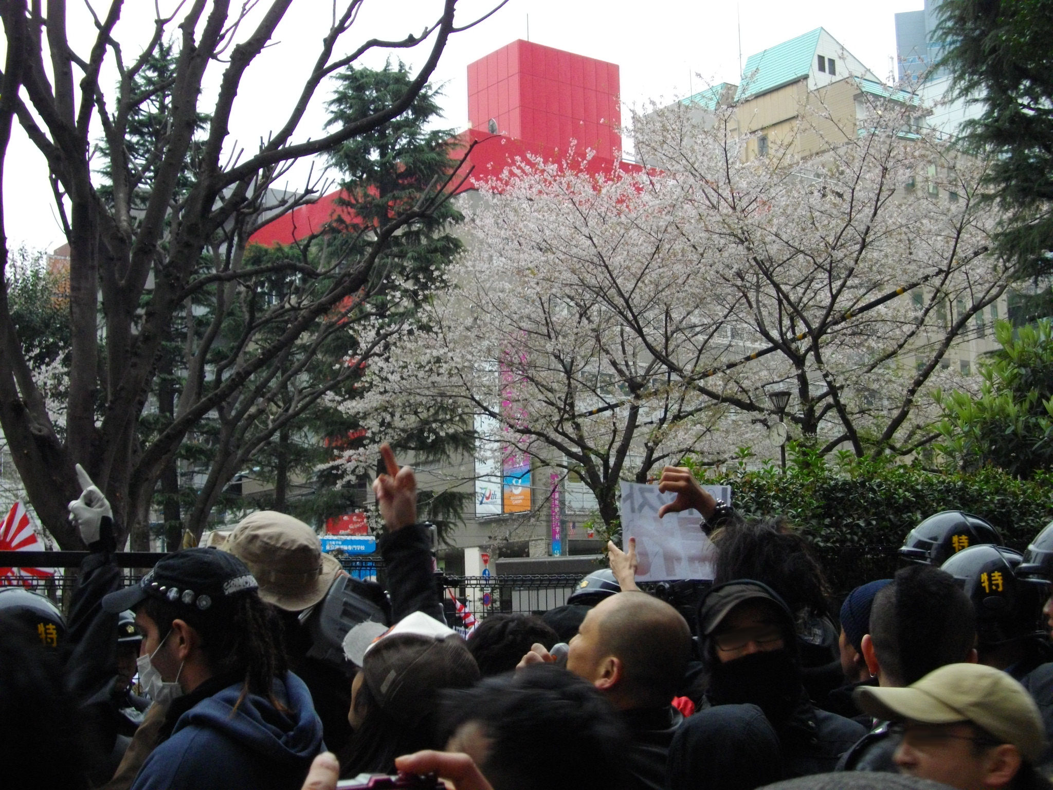 2014년 초, 이케부쿠로에서 100명의 회원들이 시위를 벌였으나, 그 두 배에 달하는 반대 시위대에 맞닥뜨렸다. 사쿠라이의 밴은 포위되었으나 한인타운으로 도주했고, 재특회 회원 1명과 반대 시위대 4명이 체포되었다.[22]