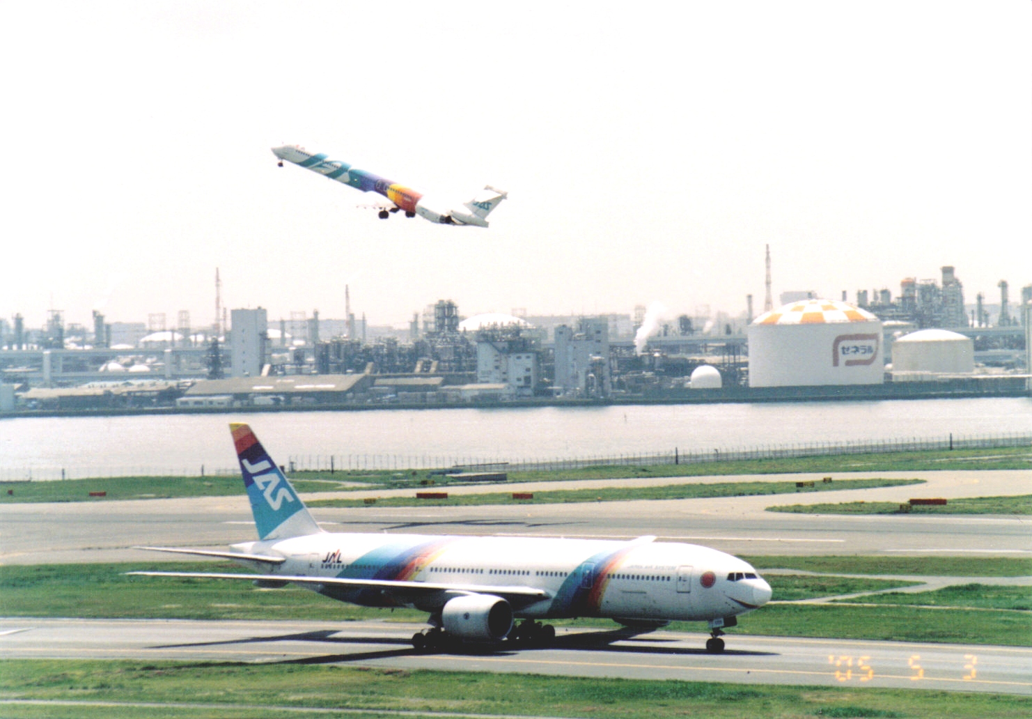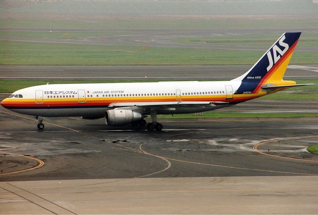 1996년 하네다 공항에서 활주하는 재팬 에어 시스템 에어버스 A300B4