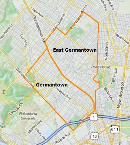 오늘날, 이전 자치구의 서쪽 부분은 '저먼타운'(또는 '웨스트 저먼타운')으로, 동쪽 부분은 '이스트 저먼타운'으로 불린다. 두 지역 간의 경계는 명확하지 않고 시간이 지나면서 변동했지만,[7] 최근에는 '저먼타운'이 저먼타운 애비뉴 서쪽, 웨스트 존슨 스트리트까지, '이스트 저먼타운'이 저먼타운 애비뉴 동쪽, 이스트 업살 스트리트까지를 지칭한다.[8][9][10]