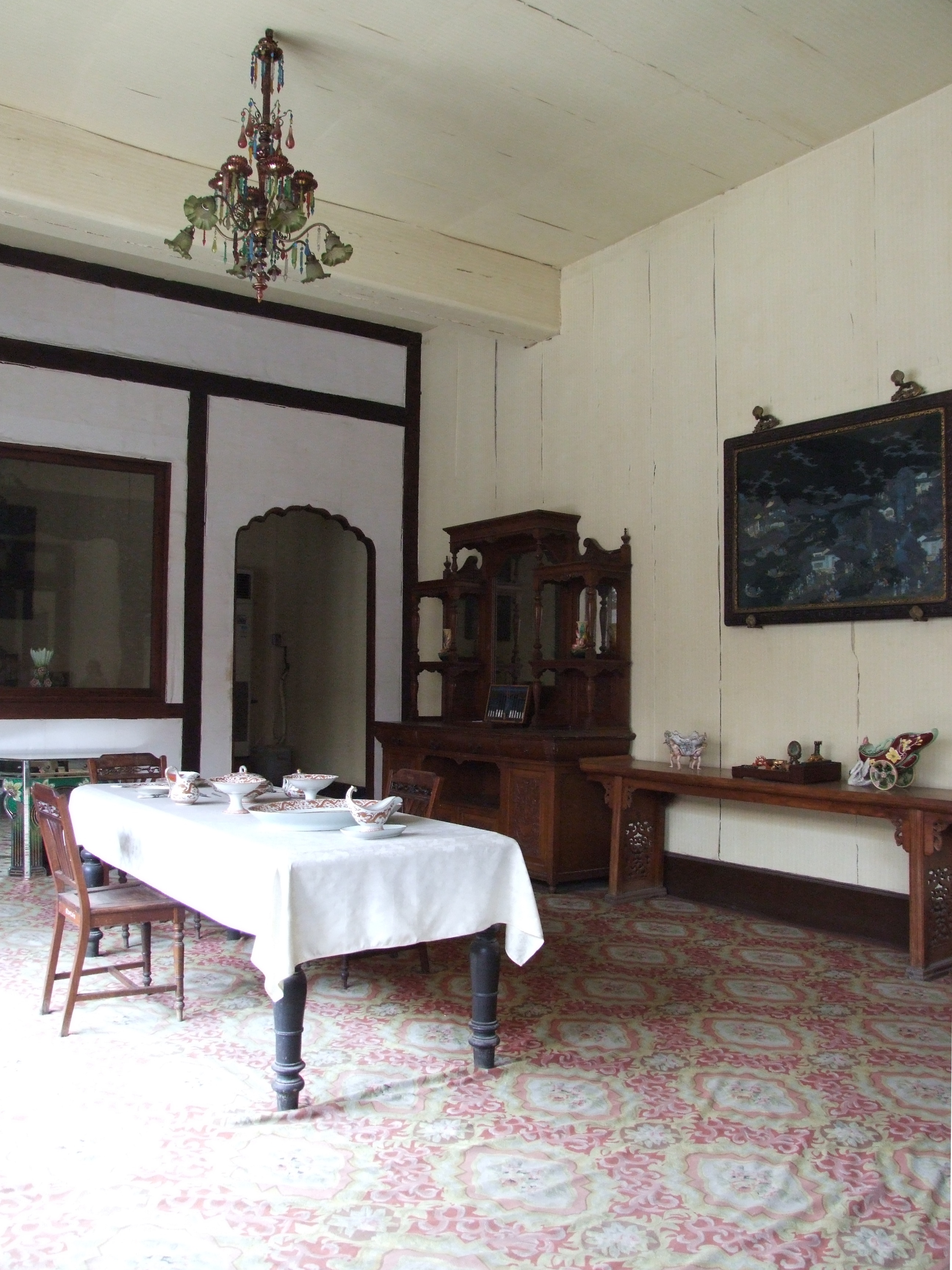 명간은 관광객이 참관할 수 있도록 하고, 서초간과 서차간 사이의 화대(花臺)는 남북으로 1개씩, 양문 중앙에는 큰 유리창이 있다. 서차간에는 서양식 식기, 책상 옆에는 서양식 식기, 탁자 옆에는 2개, 북쪽에는 벽, 서쪽에는 나무궤가 있으며, 동쪽에는 찻상을 중앙에 1개, 테이블 옆에는 2개, 북쪽에는 벽, 동쪽 끝과 동쪽 사이에는 피아노 벽이 있다. 동쪽 끝과 동쪽 사이에는 벽이 있다. 려경헌은 동쪽과 서쪽 양쪽에 각각 이실(耳室)이 있다.