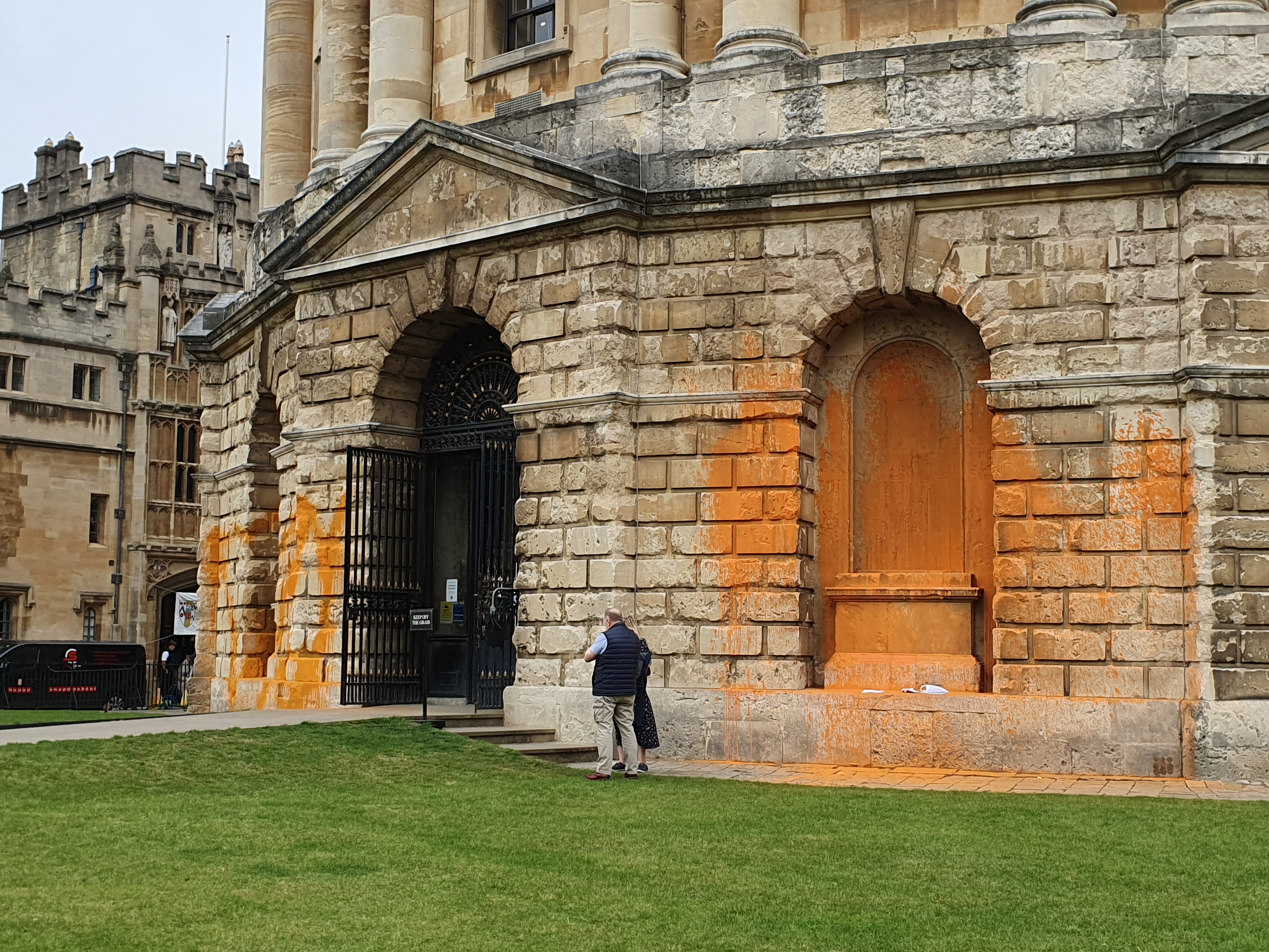 10월 9일과 10일, 시위대는 대학과 화석 연료 그룹 간의 연관성을 강조하기 위해 브리스톨 대학교의 퀸즈 빌딩, 엑서터 대학교의 포럼, 옥스퍼드 대학교의 래드클리프 카메라에 페인트를 뿌렸다.[126][127][128]