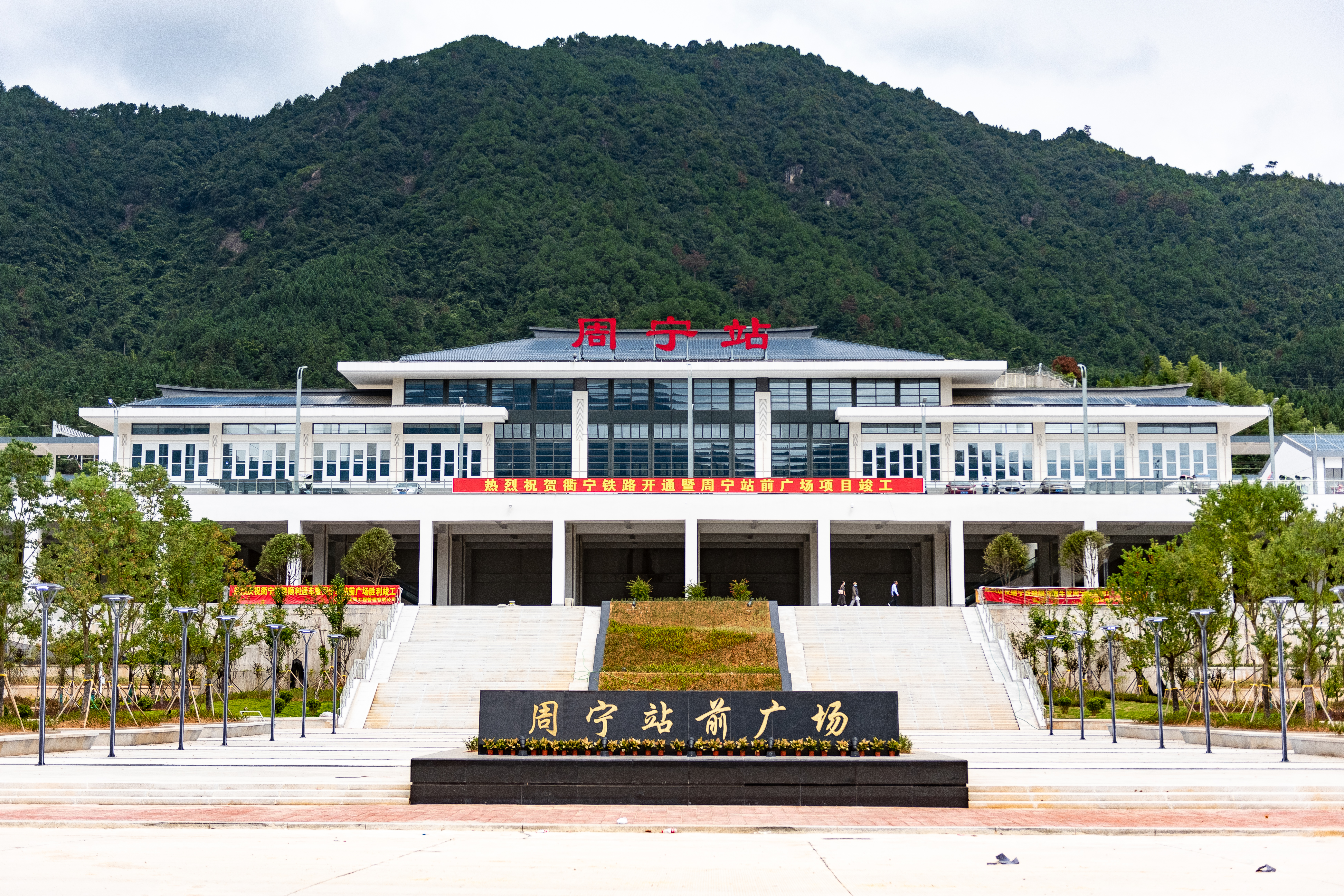 저우닝현에서는 철도와 도로 교통을 이용할 수 있다. 철도로는 중국 국가철로집단 취닝선의 저우닝역이 있고, 도로로는 닝상 고속도로와 353번 국도가 있다.
