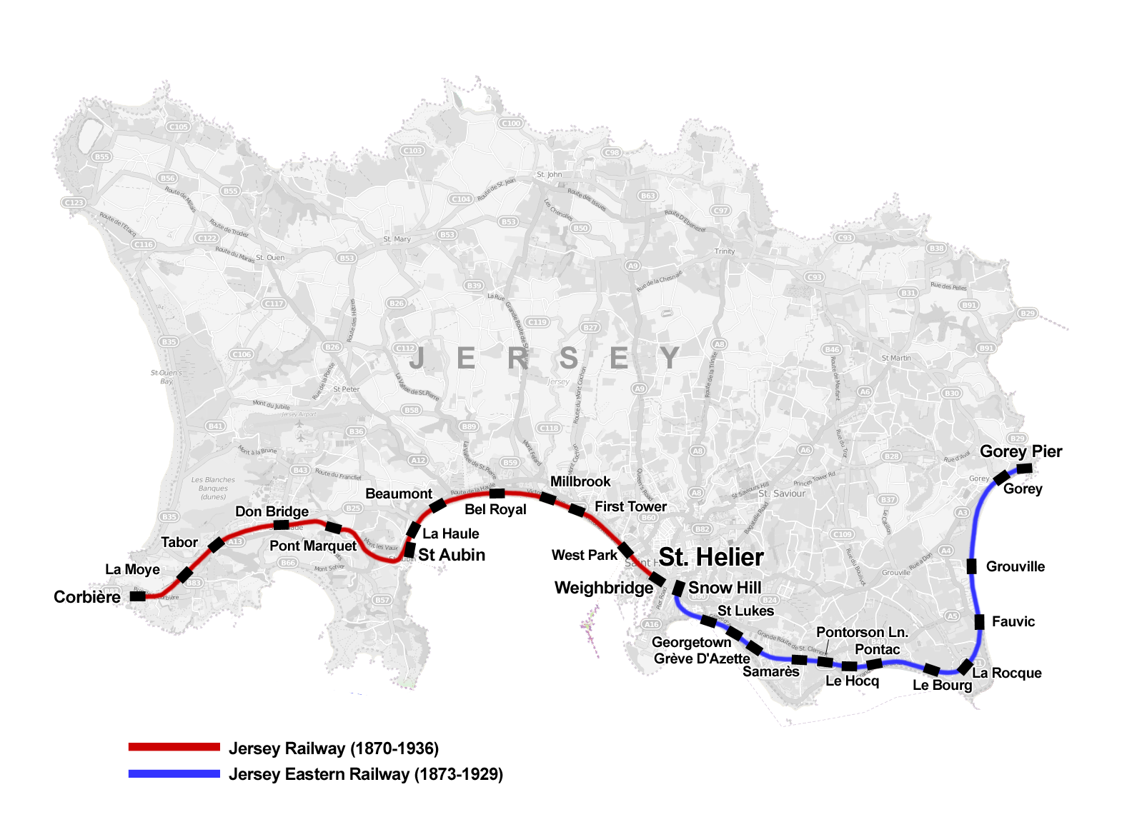 19세기에는 돈 장군에 의한 도로망 개선,[48] 두 개의 철도 노선 건설, 영국으로의 교통 연결 개선, 세인트 헬리어에 새로운 부두와 항구 건설이 이루어졌다.[41]