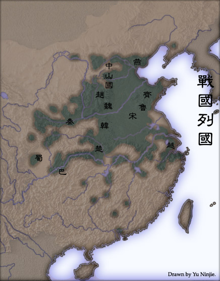 동주 왕조는 기원전 5세기경부터 몰락하기 시작하여, 영향력이 약해지면서 자체 군사력 대신 동맹국들의 군대에 의존해야 했다. 수많은 작은 정치체들이 초, 한, 진, 위, 연, 제, 조 등 일곱 개의 주요 국가로 통합되었다. 그러나 각 국가 통치자들의 독립 의지로 인해 동맹 관계에 변화가 생겼고, 기원전 535년부터 286년까지 수많은 전쟁이 발생했다. 승리한 국가는 중국 전체를 지배하고 통제하게 되었다.[1]