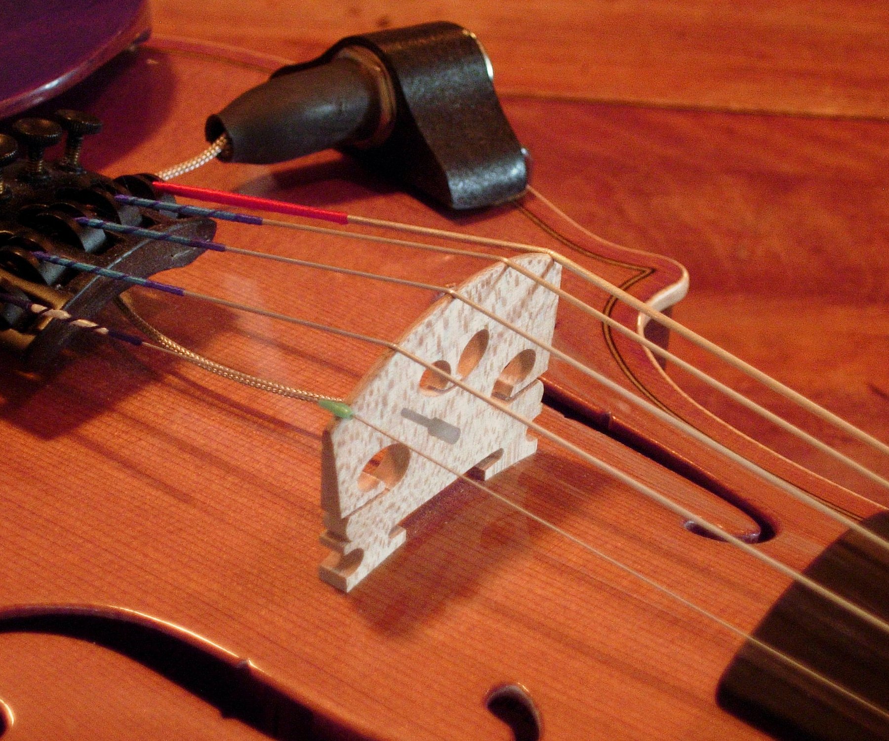 음향 5현 바이올린이 점점 더 흔해지고 있으며, 전자 바이올린이 5, 6, 7개 이상의 현을 갖는 것도 드문 일이 아니다. 일반적인 솔리드 바디는 또한 더 많은 현으로 인해 발생하는 추가 장력을 악기에 너무 많은 스트레스를 주지 않고 수용한다. 추가 현은 일반적으로 5현의 경우 낮은 C 현, 6현의 경우 낮은 C와 낮은 F, 7현의 경우 낮은 C, F 및 B이다.