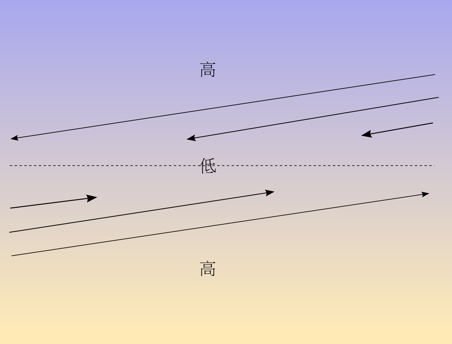 수렴장에서는 등압선상의 임의의 공기 입자 쌍 간격은 시간이 지남에 따라 좁아지는 반면, 발산장에서는 시간이 지남에 따라 넓어진다. 저기압에서는 전선이 뚜렷하지만, 고기압에서 전선이 나타나지 않는 것은 이 때문이다.