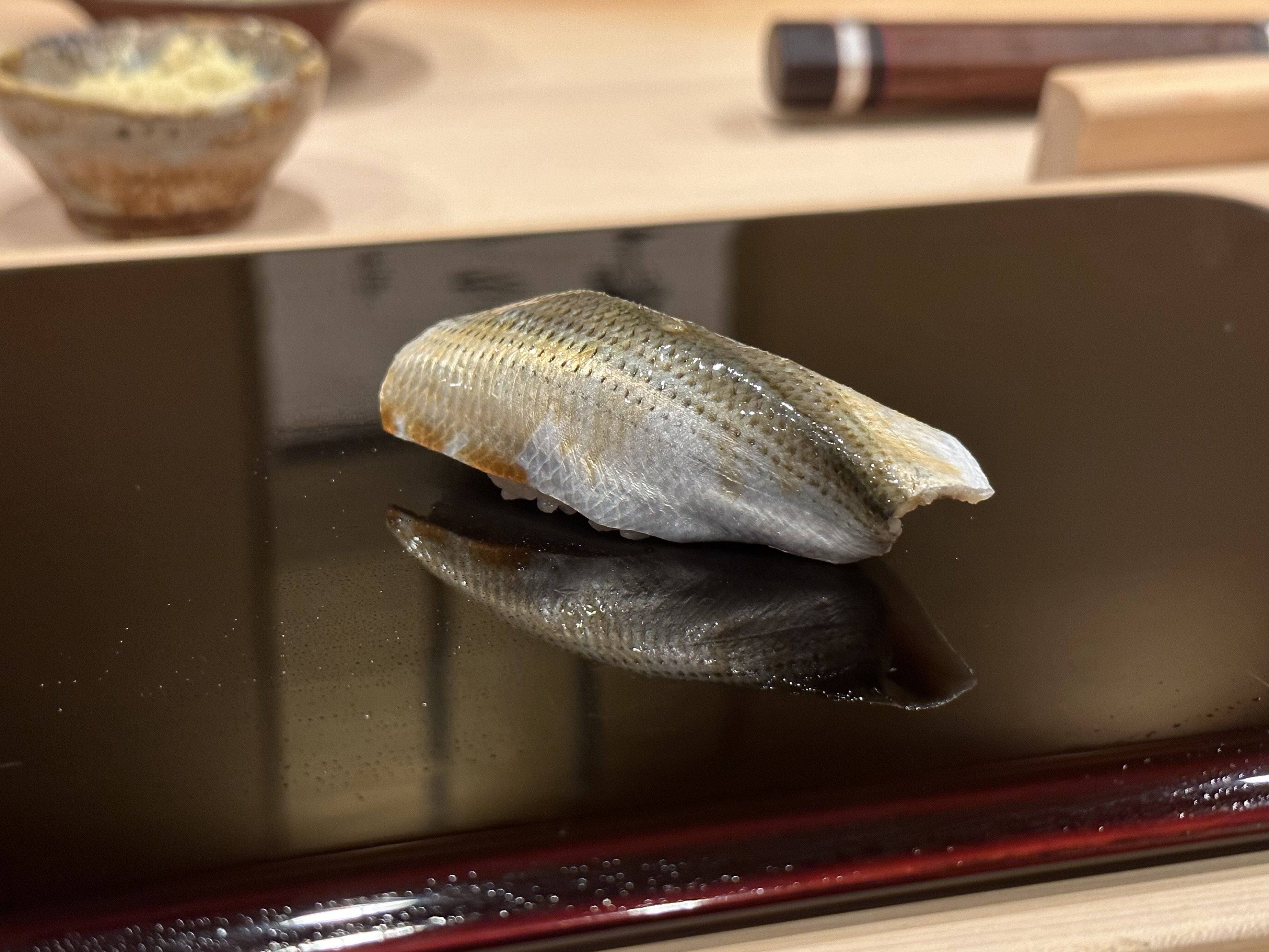 작은 크기의 전어(신코)는 손질하기 어렵고, 식초와 소금의 조절에 따라 풍미가 크게 변하기 때문에, 스시 장인의 기량을 가늠하는 생선이라고도 불린다.[7]