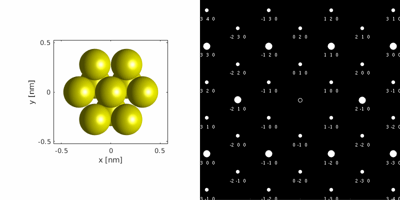 여기서 는 역격자 벡터이고 는 해당 포텐셜의 푸리에 계수이다. 역격자 벡터는 밀러 지수 로 표현될 수 있다.[88]