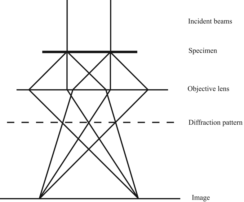 투과 전자 현미경 (TEM) 회절 | 선택 영역 회절 (SAD) 수렴 빔 전자 회절 (CBED) |