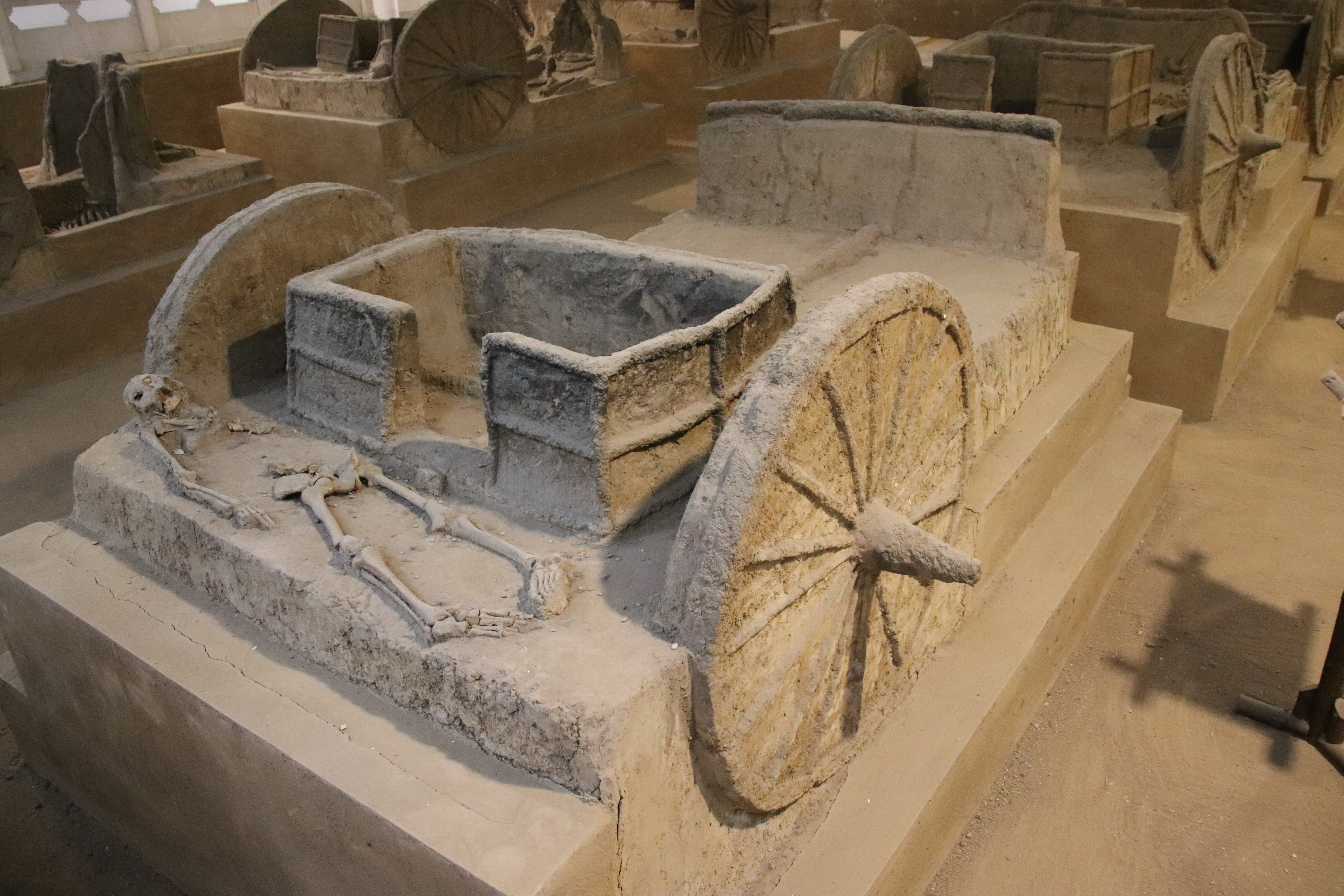 상나라 시대에는 왕족 구성원들이 전차, 말, 마부와 함께 완전한 가구와 하인들과 함께 매장되었다. 상나라 전차는 종종 두 마리의 말이 끌었지만, 네 마리의 말이 끄는 변형도 가끔 매장지에서 발견된다.