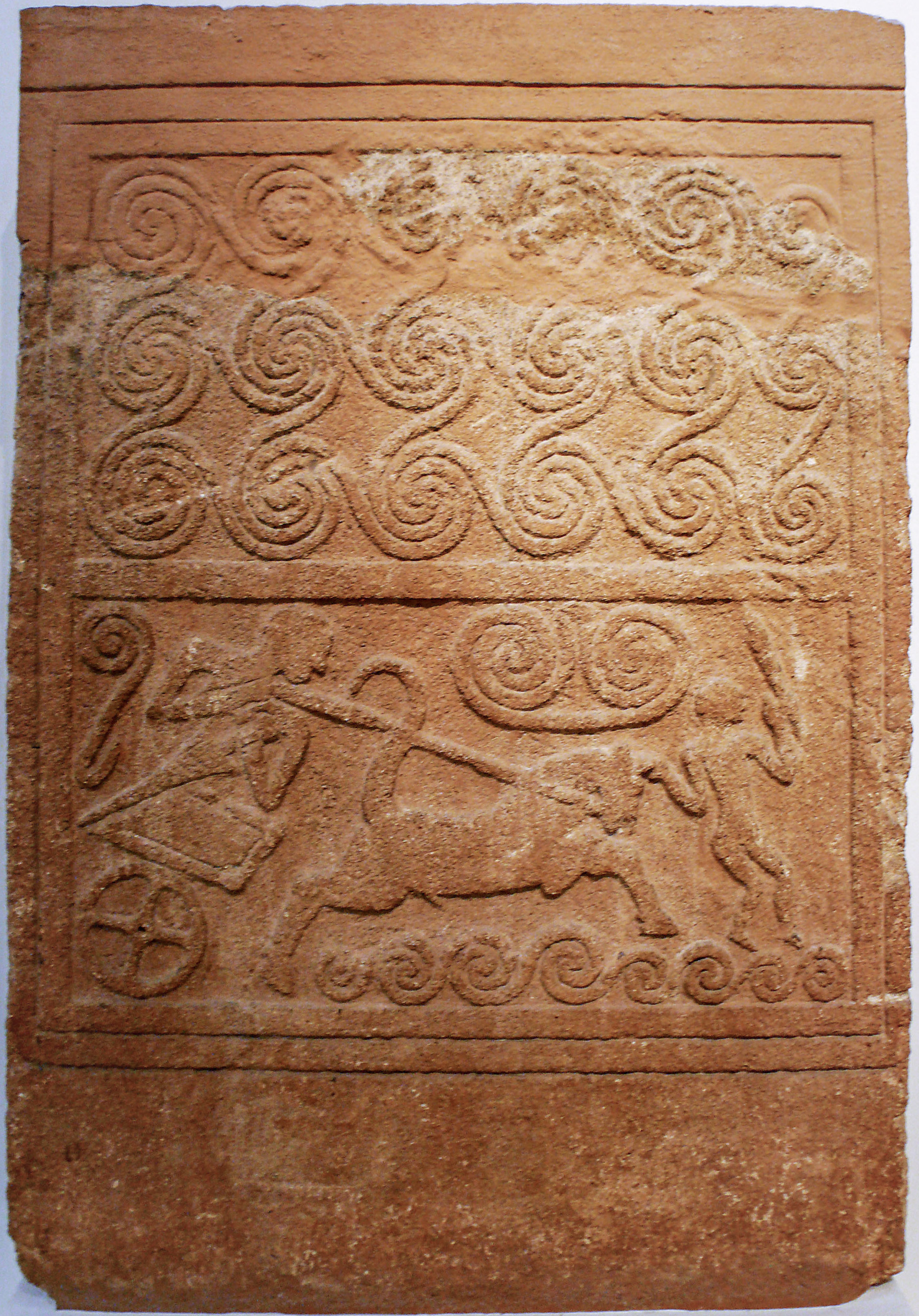 유일하게 온전한 상태로 보존된 에트루리아 전차는 기원전 530년경 몬텔레오네 디 스폴레토에서 발견된 전차 매장의 일부이다. 현재 메트로폴리탄 미술관에 소장되어 있으며,[40] 세밀한 저부조 장면으로 장식된 청동판으로 장식되어 있고, 아킬레우스의 일생의 에피소드를 묘사한 것으로 해석된다.[41]