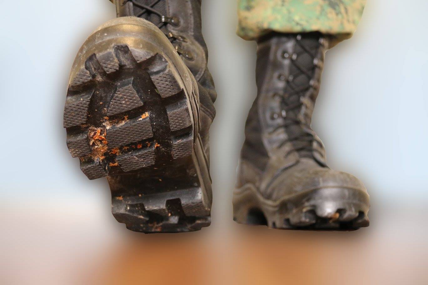 - 진흙에서의 용이성: 진흙과 같은 지형에서 전투화가 쉽게 빠질 수 있도록 표면을 부드럽게 처리했다.