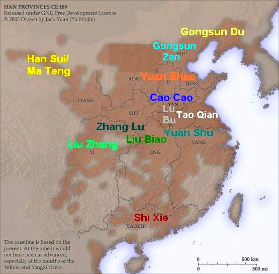192년 | 제에 주둔하며 유비를 부장으로 삼아 원소와 대적함. |