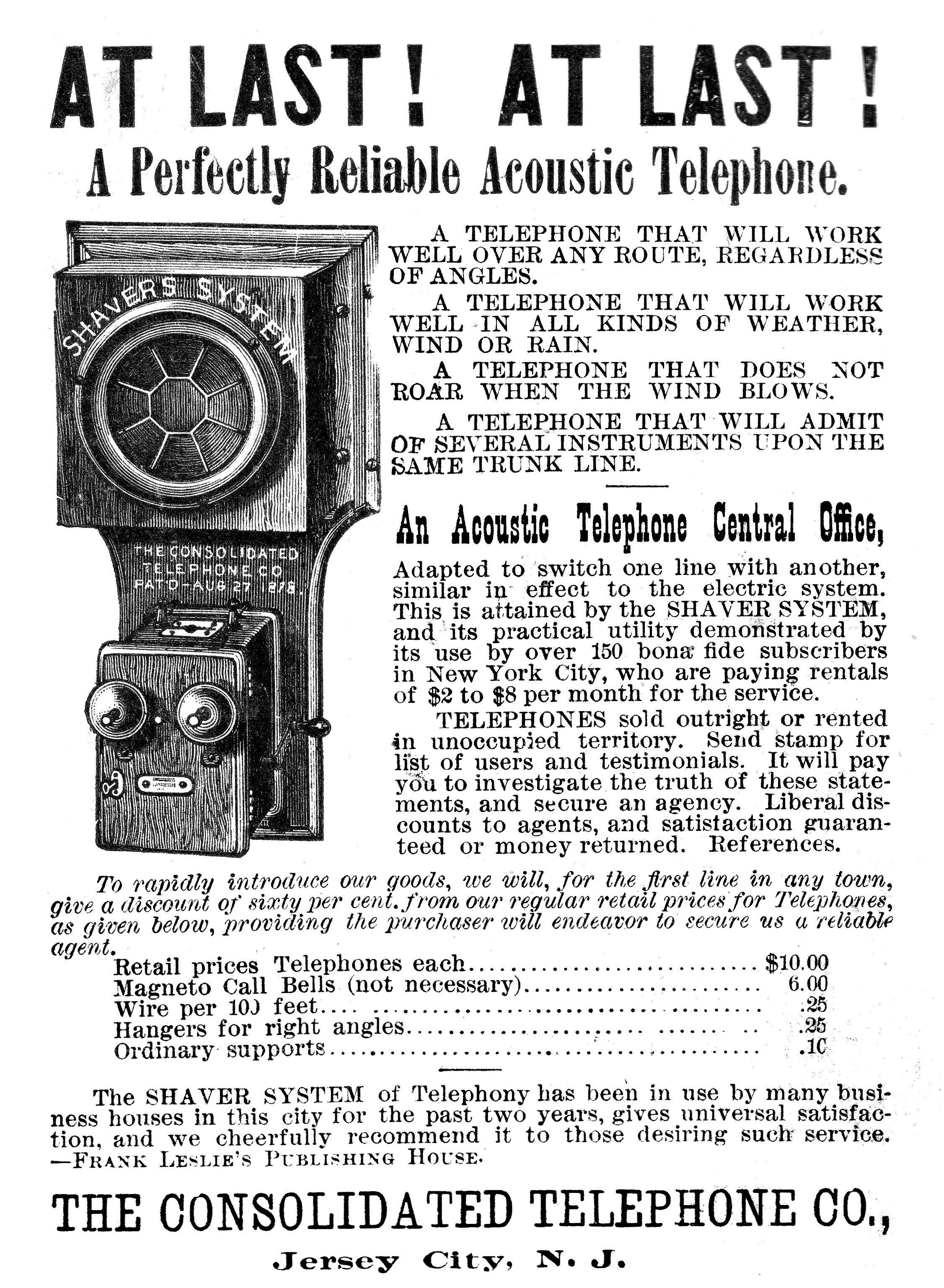 초기 전화기는 기술적으로 다양했다. 어떤 것은 수중 마이크로폰을 사용했고, 어떤 것은 영구 자석 주위에 감긴 전자석에 전류를 유도하는 금속 진동판을 사용했으며, 어떤 것은 다이나믹 방식이었다. 즉, 진동판이 영구 자석의 자기장 내에서 코일을 진동시키거나 코일이 진동판을 진동시켰다. 음향 구동 다이나믹 방식은 자체 전력 생성 능력이 중요했던 군사 및 해양 분야에서 20세기 내내 소량으로 사용되었다. 하지만 대부분은 에디슨/베를리너 탄소 마이크를 사용했는데, 이것은 다른 종류보다 훨씬 소리가 컸다. 비록 회선의 임피던스와 호환되도록 인덕션 코일(임피던스 정합)이 필요했지만 말이다. 에디슨 특허는 네트워크가 장비보다 더 중요해진 20세기까지 벨의 독점을 유지하는 데 기여했다.