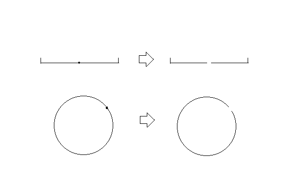 실수선 는 모든 점이 절단점 차수가 2인 절단점 공간이다. 2차원 이상의 유클리드 공간 ()은 연결 공간이지만, 절단점을 갖지 않는다. 유클리드 평면 에서 n개의 직선이 절단점 공간이 될 필요충분조건은, 공점선이거나, 개의 직선이 평행하며 남은 한 직선과 교차하는 것이다.